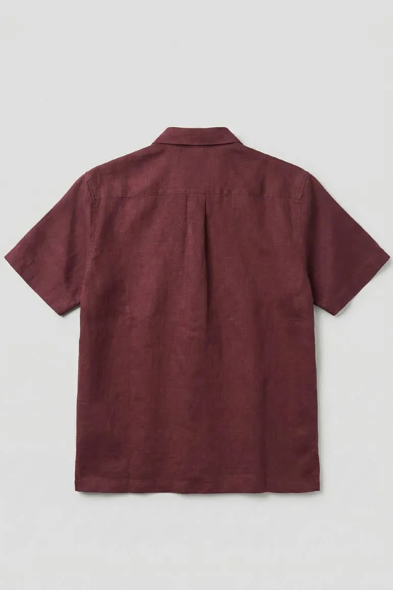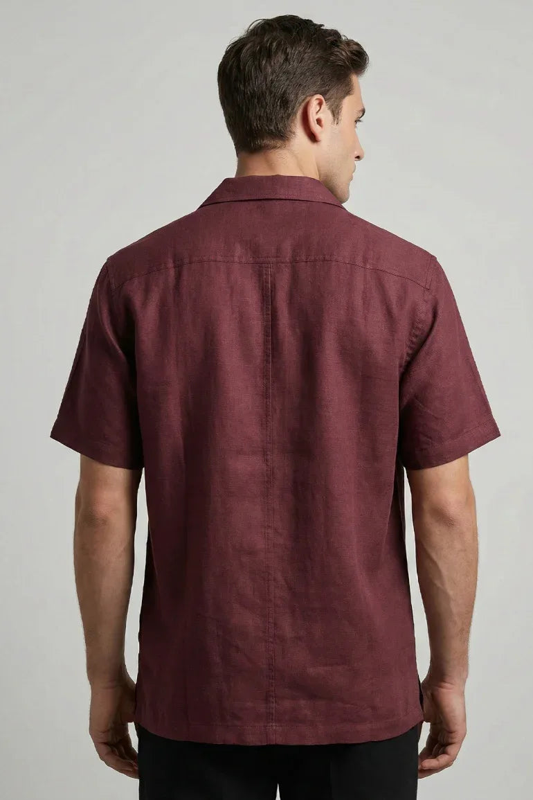 Effortlessly cool and breathable, this maroon linen Cuban collar shirt brings timeless charm to your summer wardrobe. Designed for comfort and sophistication, it’s perfect for casual outings or relaxed evenings.