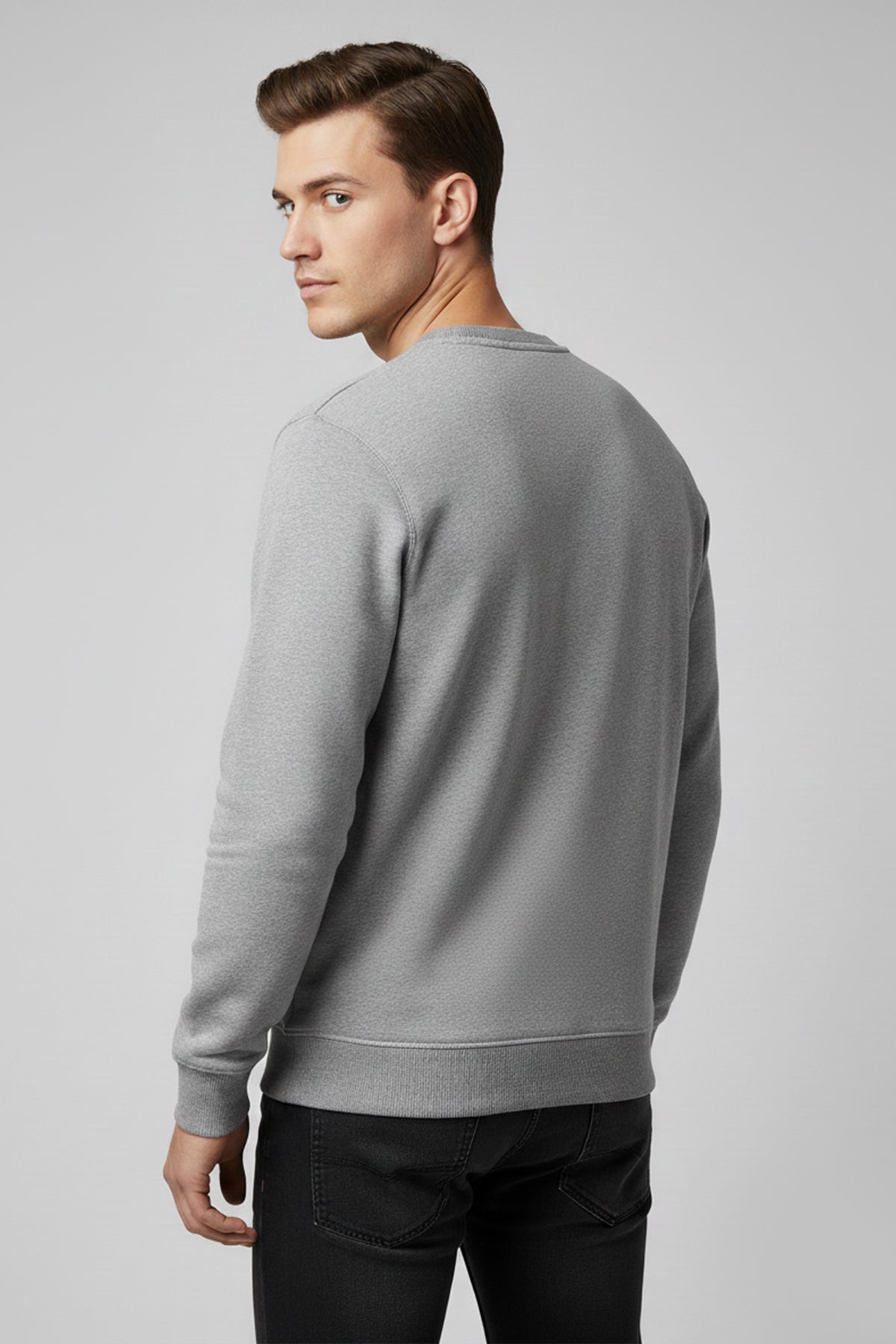 Keep your look clean and effortless with this light grey crew neck sweatshirt. Crafted from a soft cotton blend, it features ribbed cuffs and hem for a secure fit and a classic silhouette perfect for layering or casual wear. Ideal for everyday comfort and style.