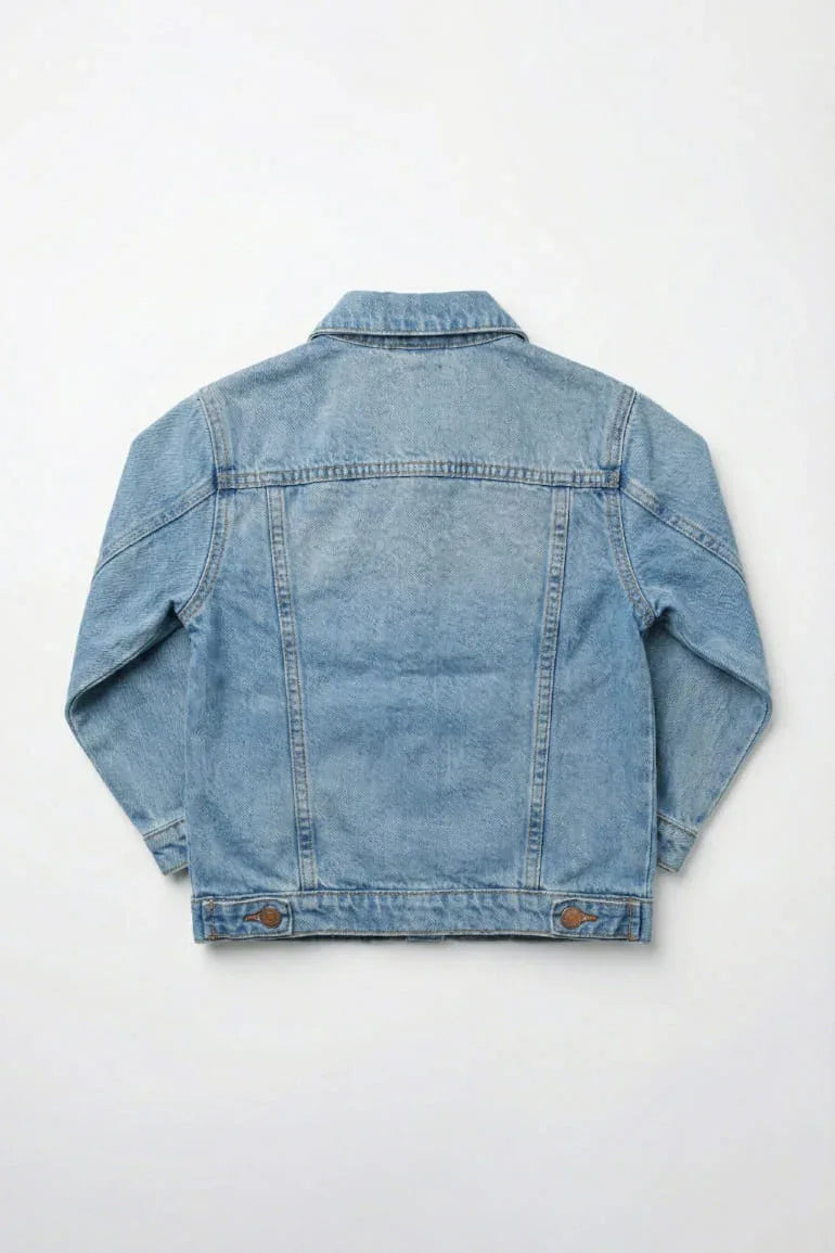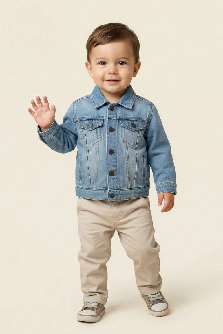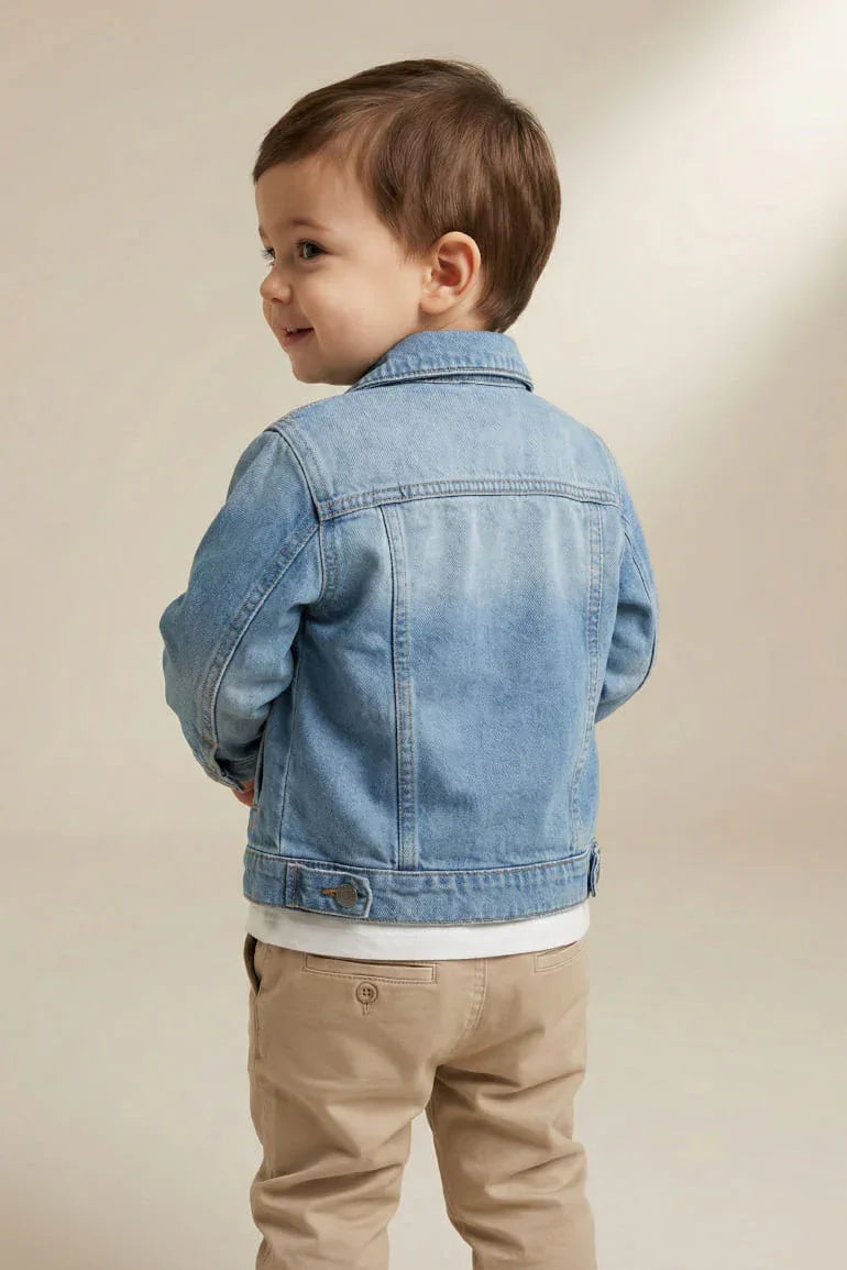 A timeless light blue denim jacket designed for your little trendsetter. Crafted from soft, durable denim with button-up front and flap pockets, this piece adds effortless style and comfort — perfect for layering over tees or sweaters.