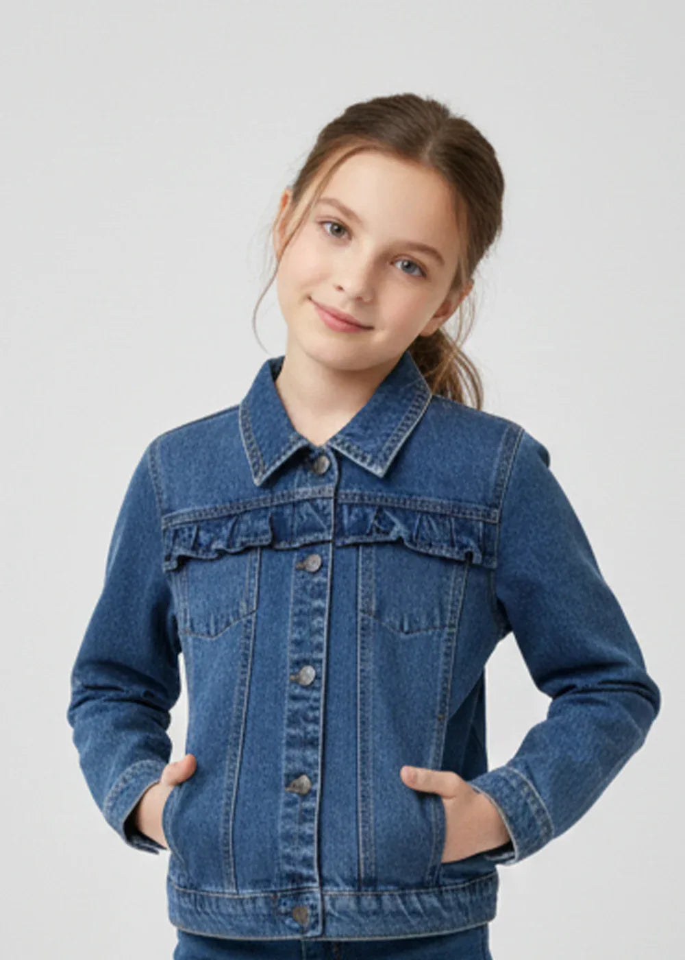 Denim Jacket for Girls - Mid Blue