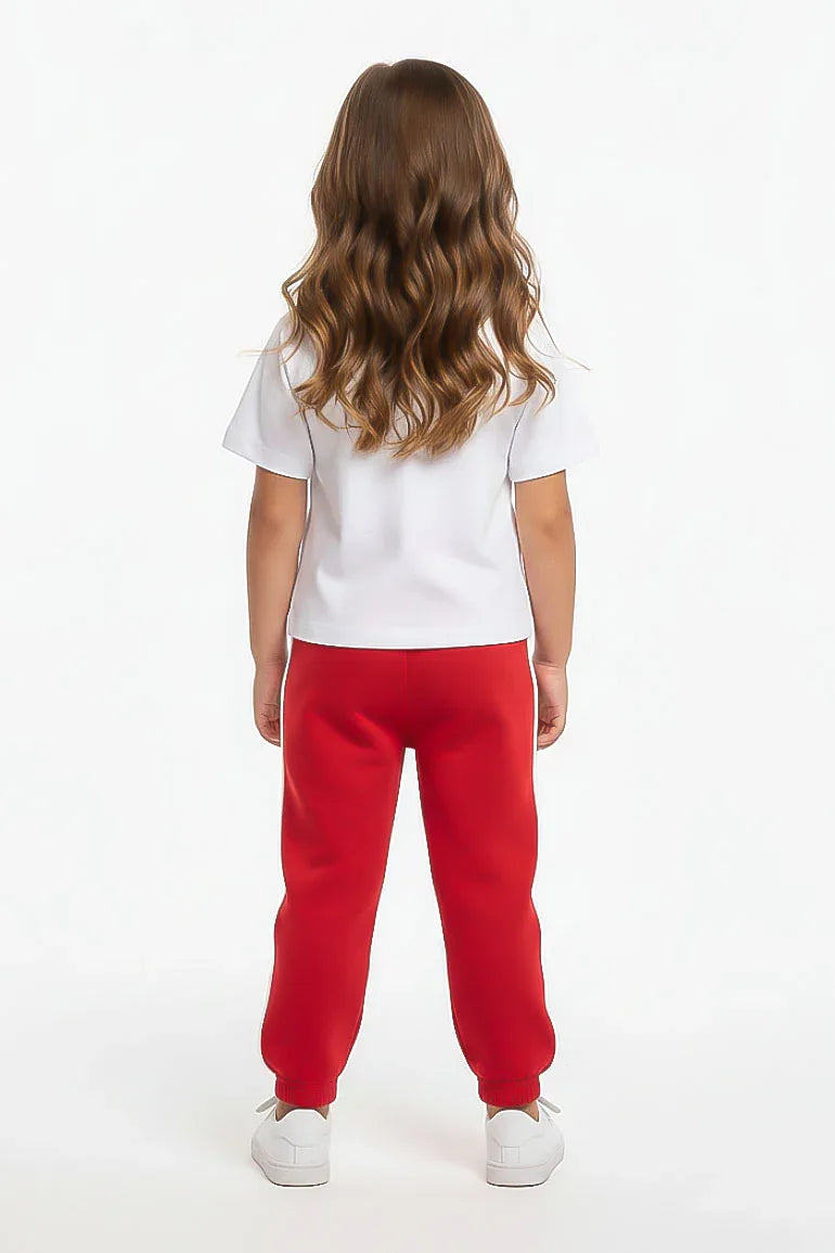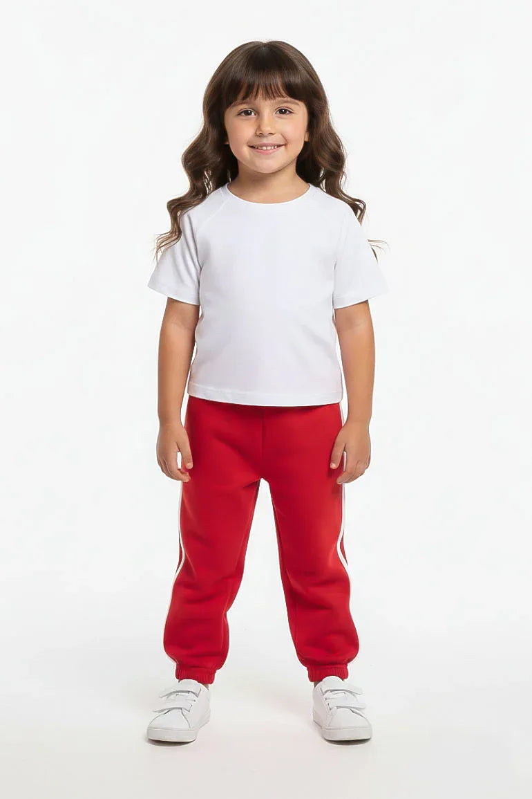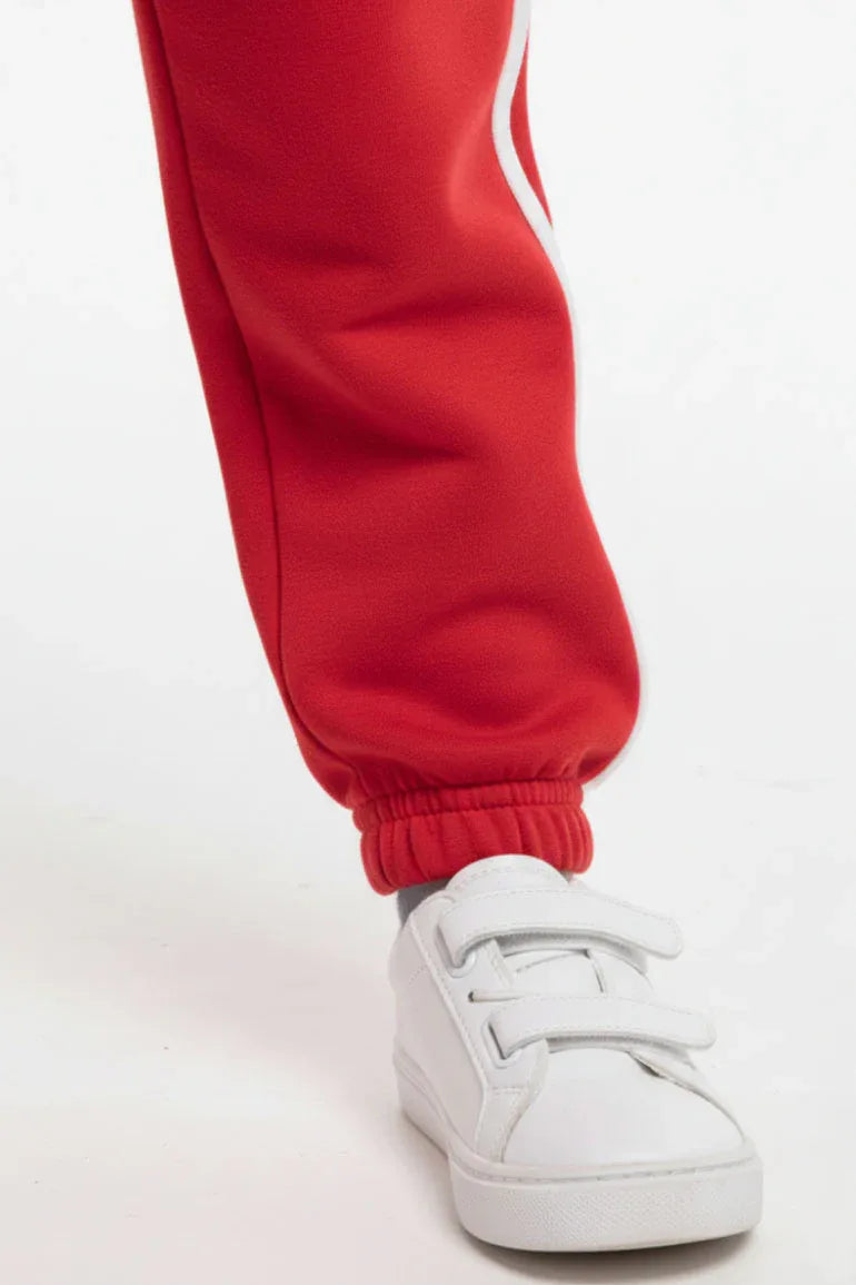 Comfortable red jogger trousers designed with a soft elastic waistband and cuffed hems for a secure fit. Made from breathable, baby-friendly fabric, ideal for everyday wear, playtime, and casual outings.