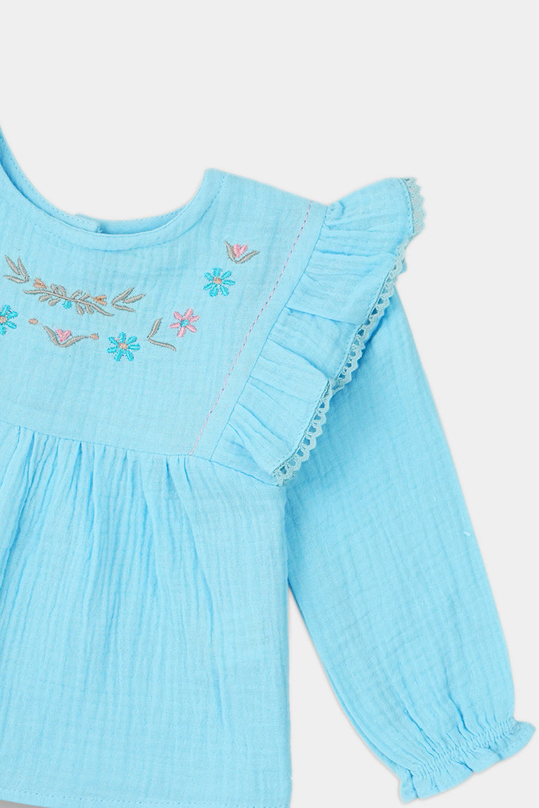 Embroidered Blouse for Baby Girl - Columbia Blue