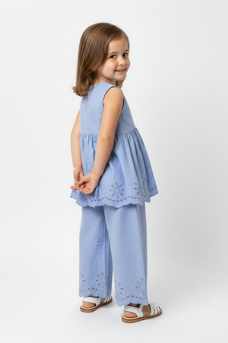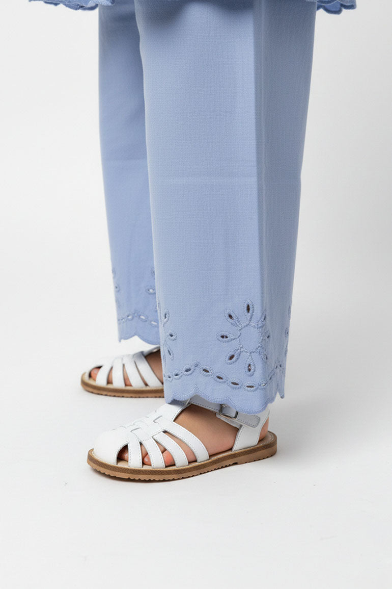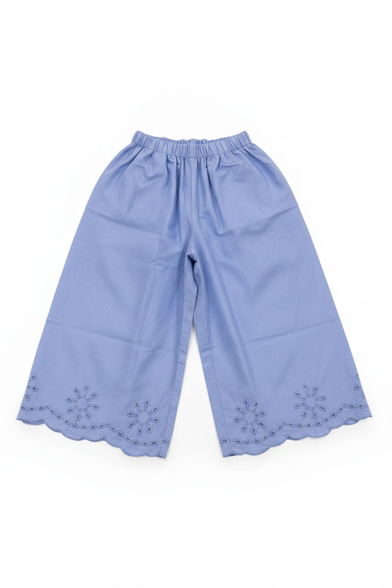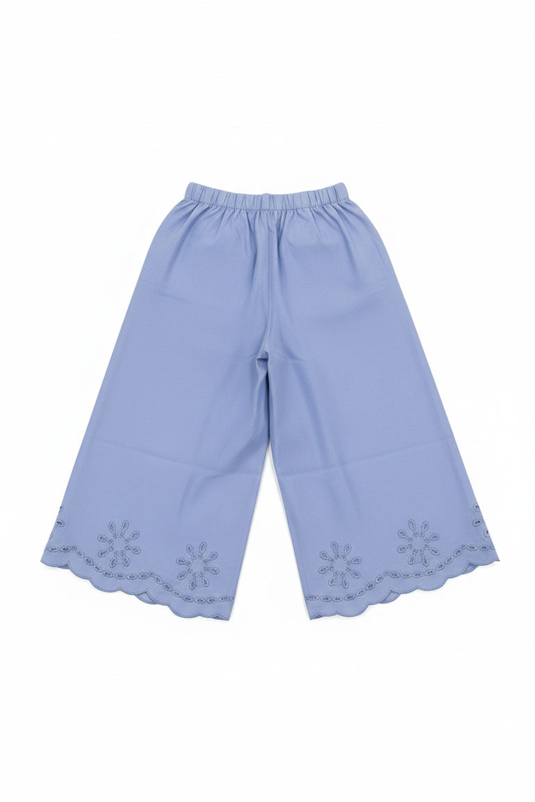 Embroidered Scallop Hem Pants For Baby Girl - Sky Blue