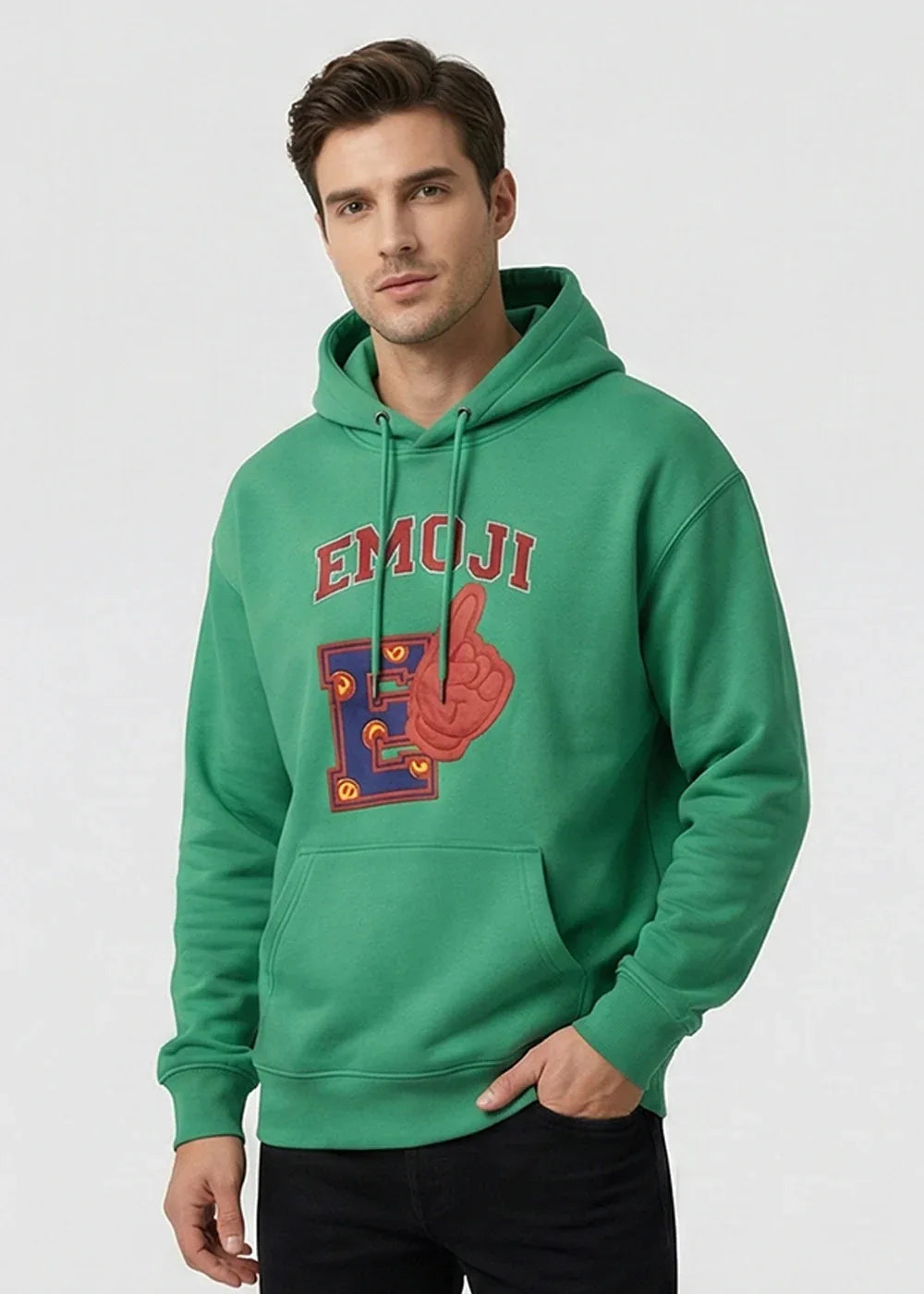 A bold green hoodie featuring a standout emoji-inspired graphic for a fun, street-style look. Made from soft, cozy fabric with a relaxed fit for everyday comfort. Perfect for casual wear, layering, and off-duty styling.