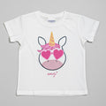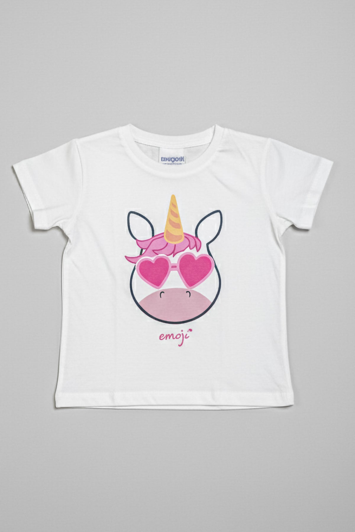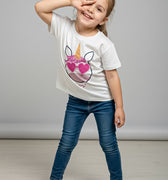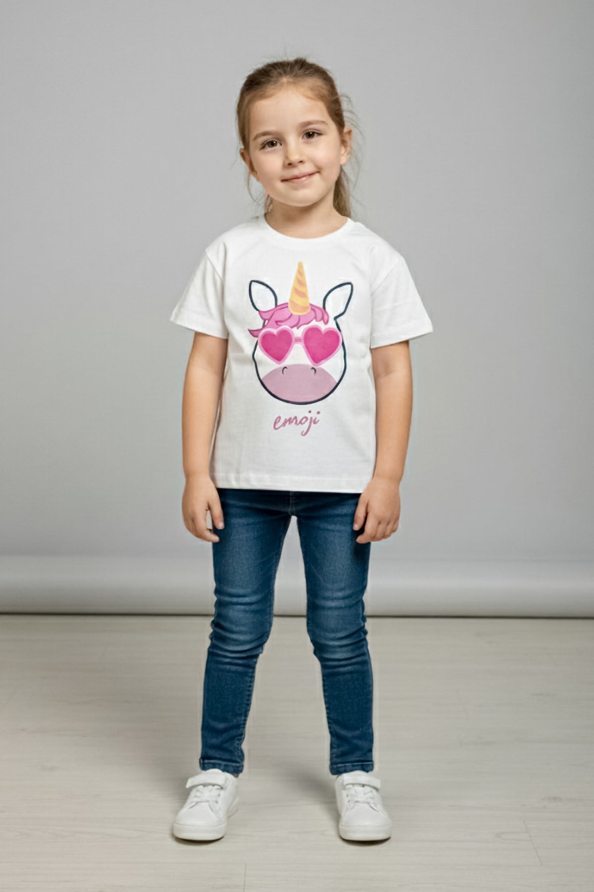 Add a playful touch to your child’s wardrobe with this Unicorn Emoji graphic t-shirt, featuring a cute unicorn with heart-shaped sunglasses and a golden horn. Crafted from soft, breathable cotton, it’s perfect for everyday comfort and colorful style.