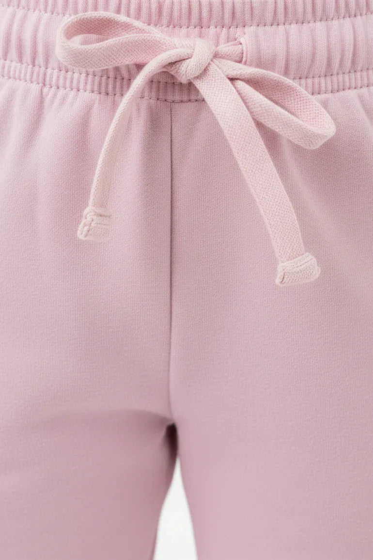 Designed for all-day comfort, these blush pink fleece jogger pants feature a soft knit feel with a relaxed yet flattering fit. Finished with an elastic waistband, adjustable drawstring, and cuffed hems—perfect for casual outings or cozy lounging.