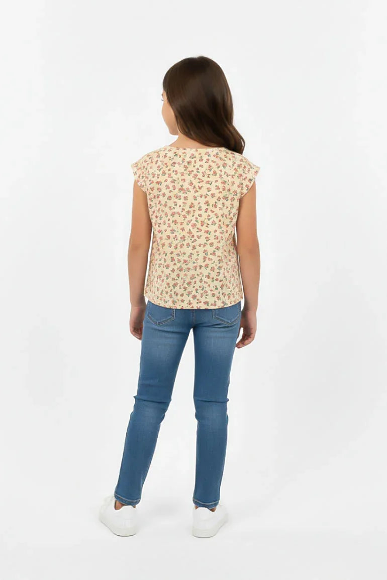 Floral Sleeveless Top for Girls - Soft Yellow