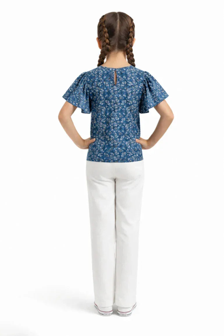 Frills Printed T-Shirt for Girl - Nile Blue