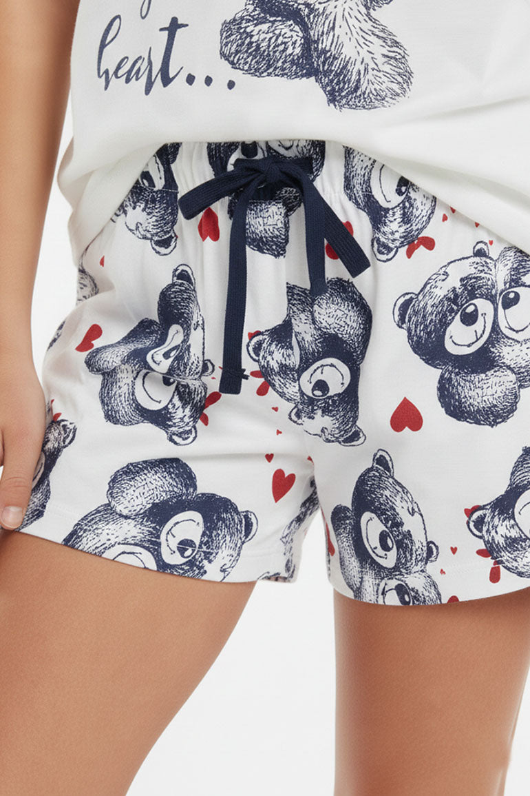 A cute matching top and shorts set featuring a playful teddy print. Designed for everyday comfort with an easy, relaxed fit. Ideal for casual wear, playtime, and summer days.