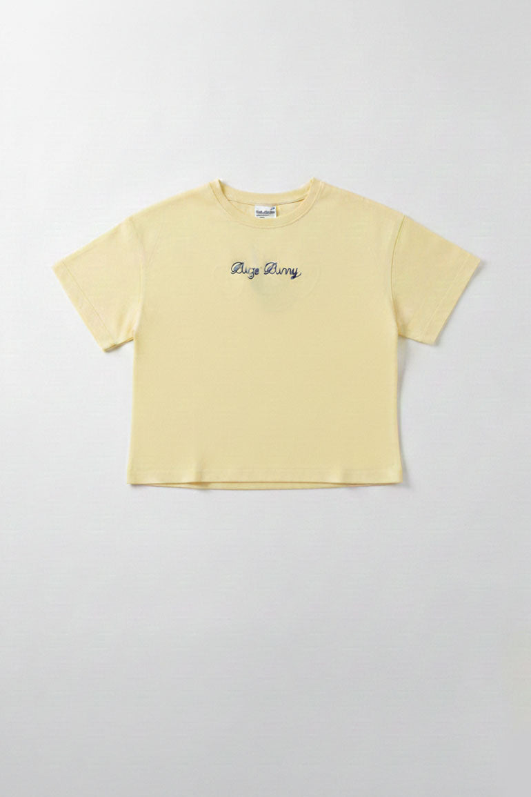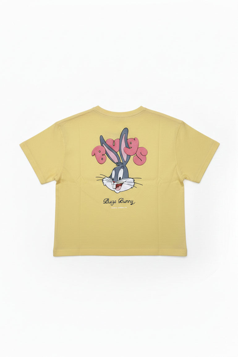 A soft cotton T-shirt in a fresh yellow shade, featuring a subtle graphic detail on the front. Designed with a comfortable regular fit, perfect for everyday wear, casual outings, and easy styling with jeans or leggings.