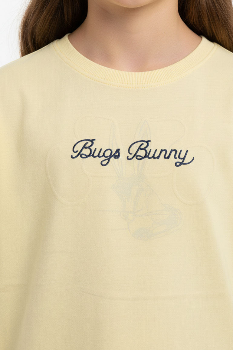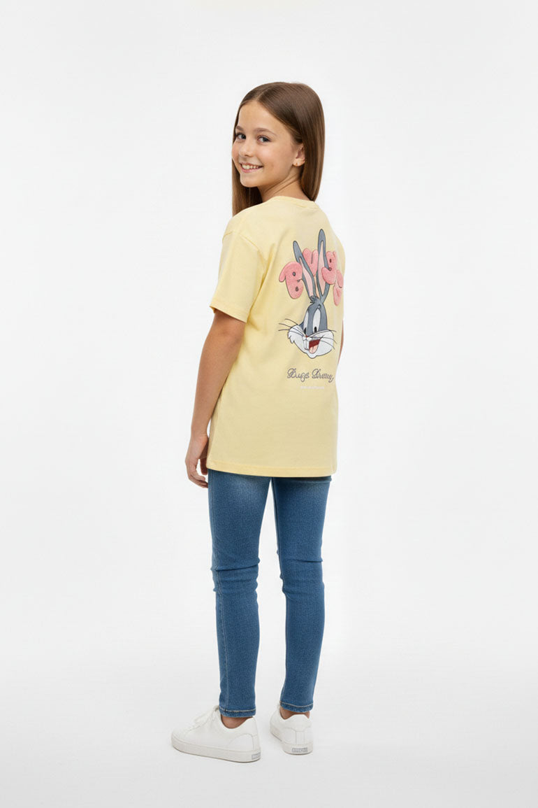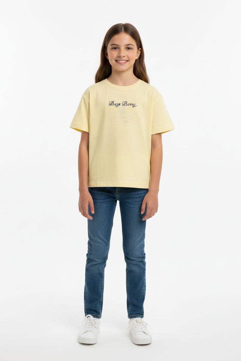 Graphic Cotton T-Shirt for Girls - Pale Banana