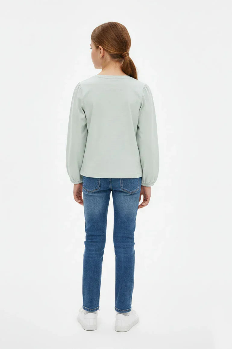 Graphic Long Sleeve T-Shirt for Girls - Mint Green