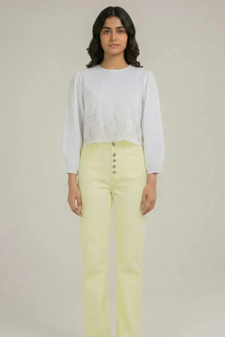 Do not iron directly on prints/embroidery/embellishments