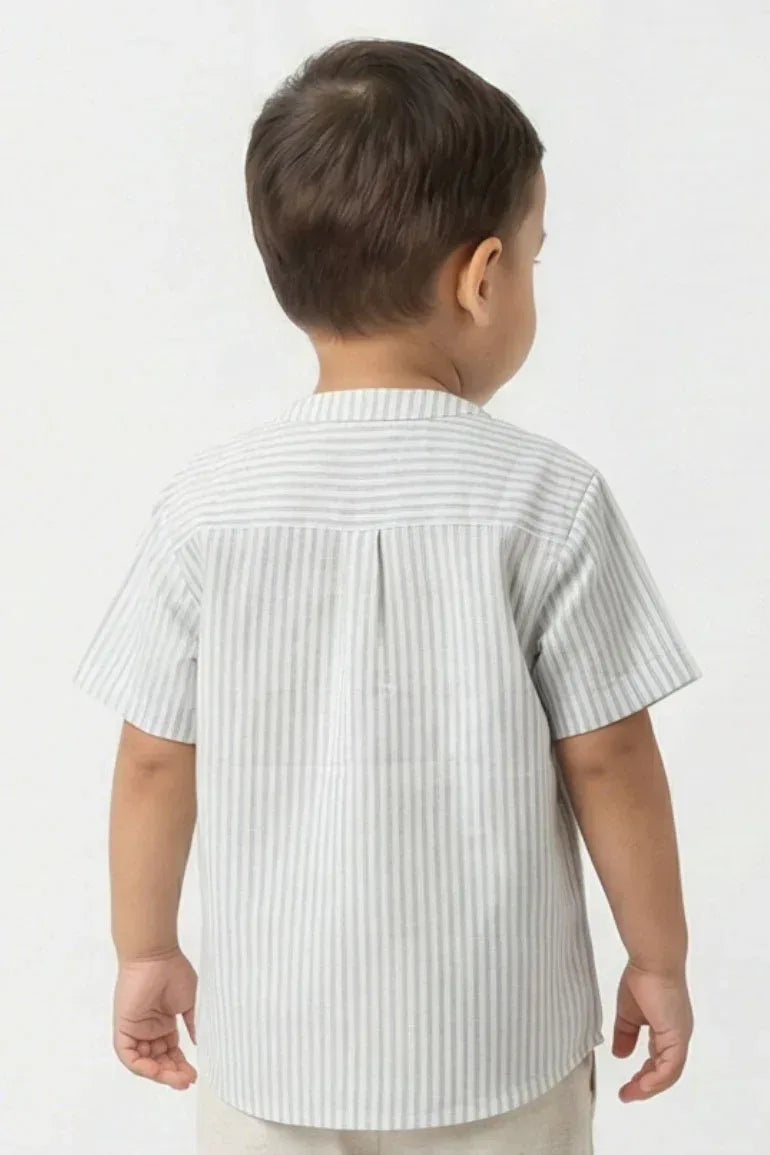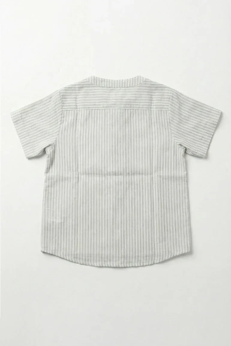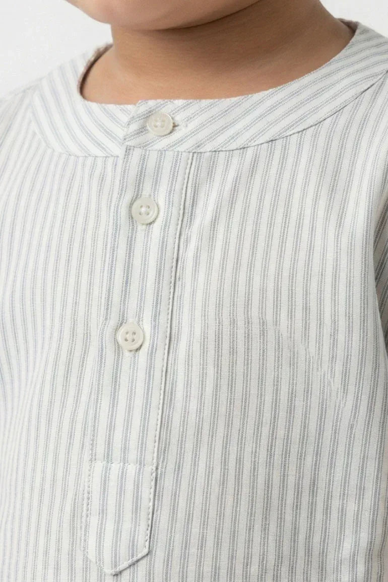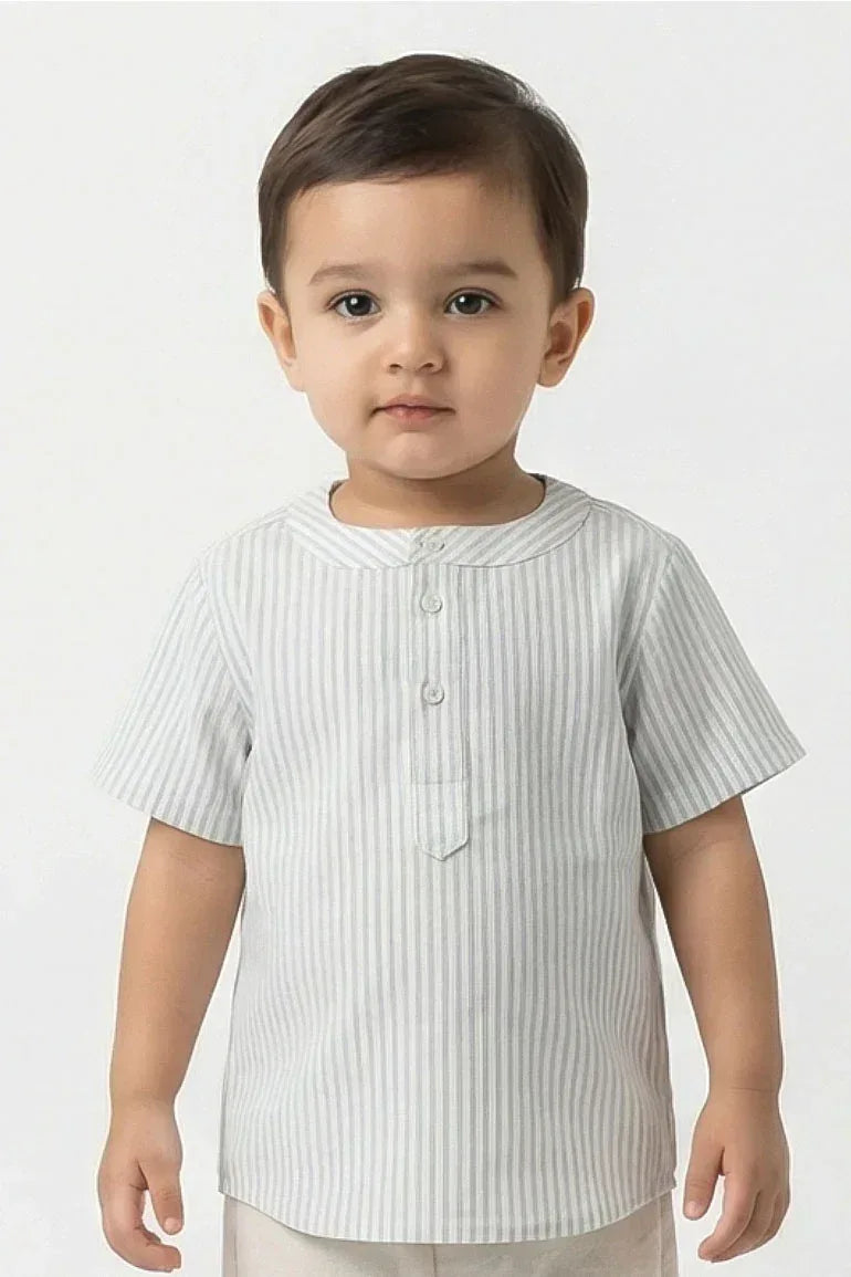 Designed for comfort and charm, this striped short-sleeve kurta-style shirt features a soft, breathable fabric with a classic button placket. The light blue stripe adds a fresh, timeless look—perfect for everyday wear, festive occasions, or summer outings.
