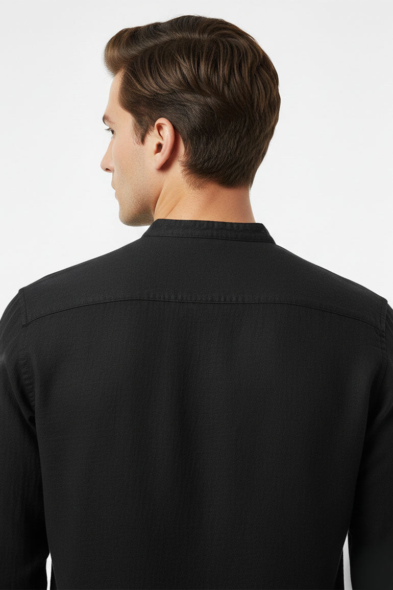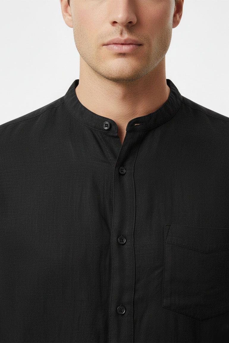 Linen Band Collar Shirt For Men - Black