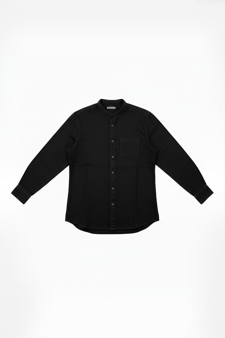 Breathable lightweight shirt with a clean band collar and full button front. Relaxed everyday fit with a chest pocket for easy styling. Perfect for smart casual wear work and evening outings