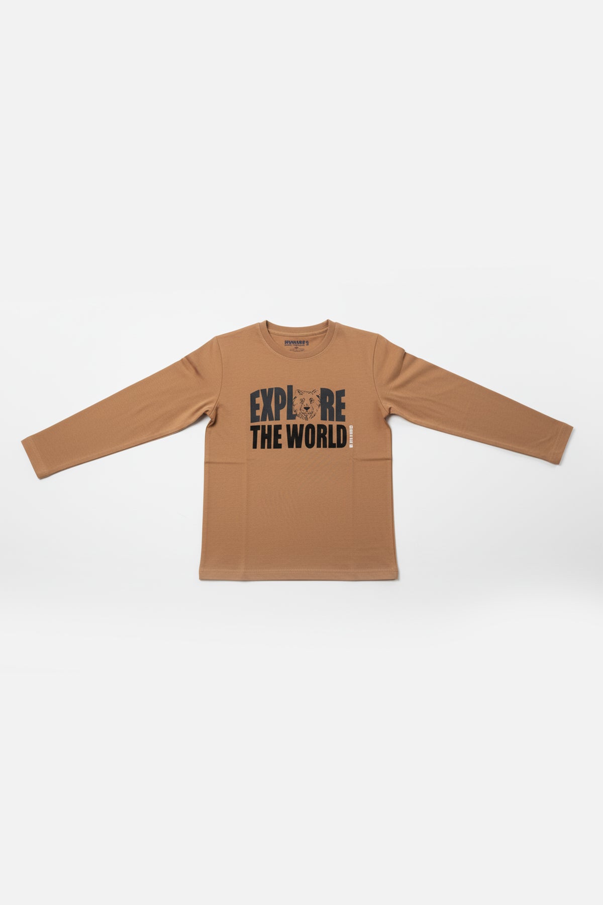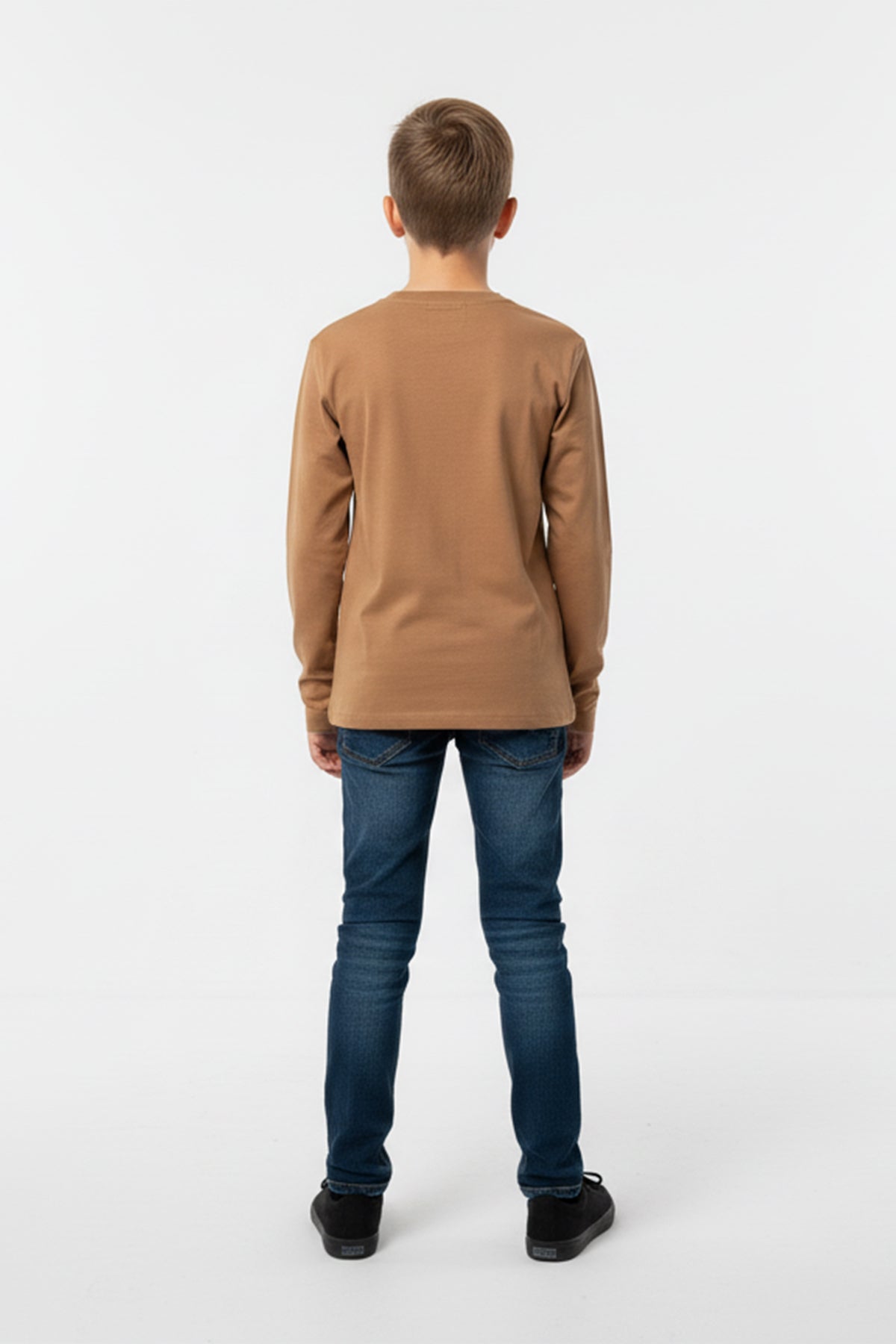 Long Sleeve Graphic T-Shirt For Boys – Brown