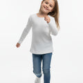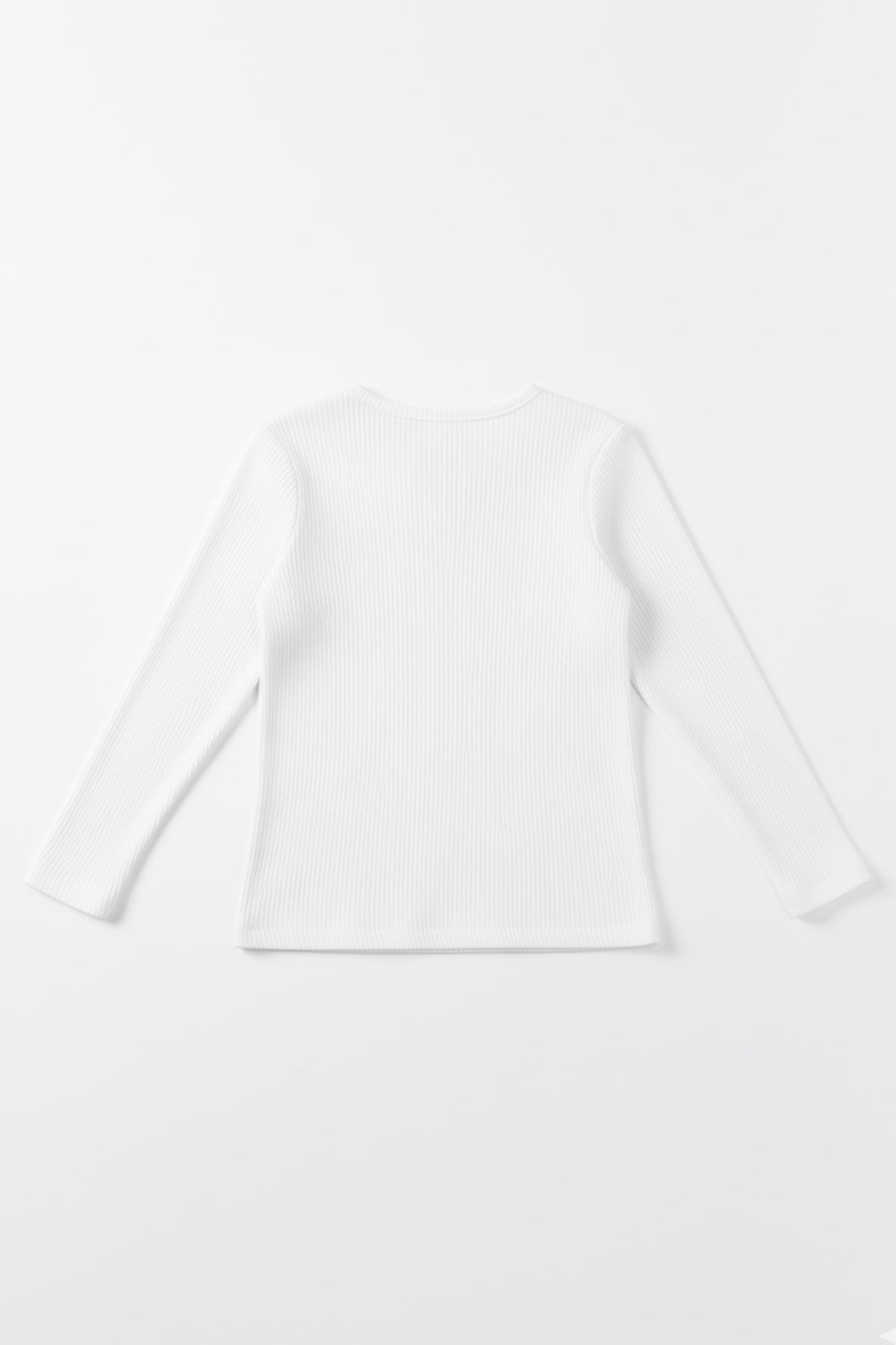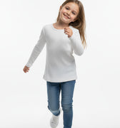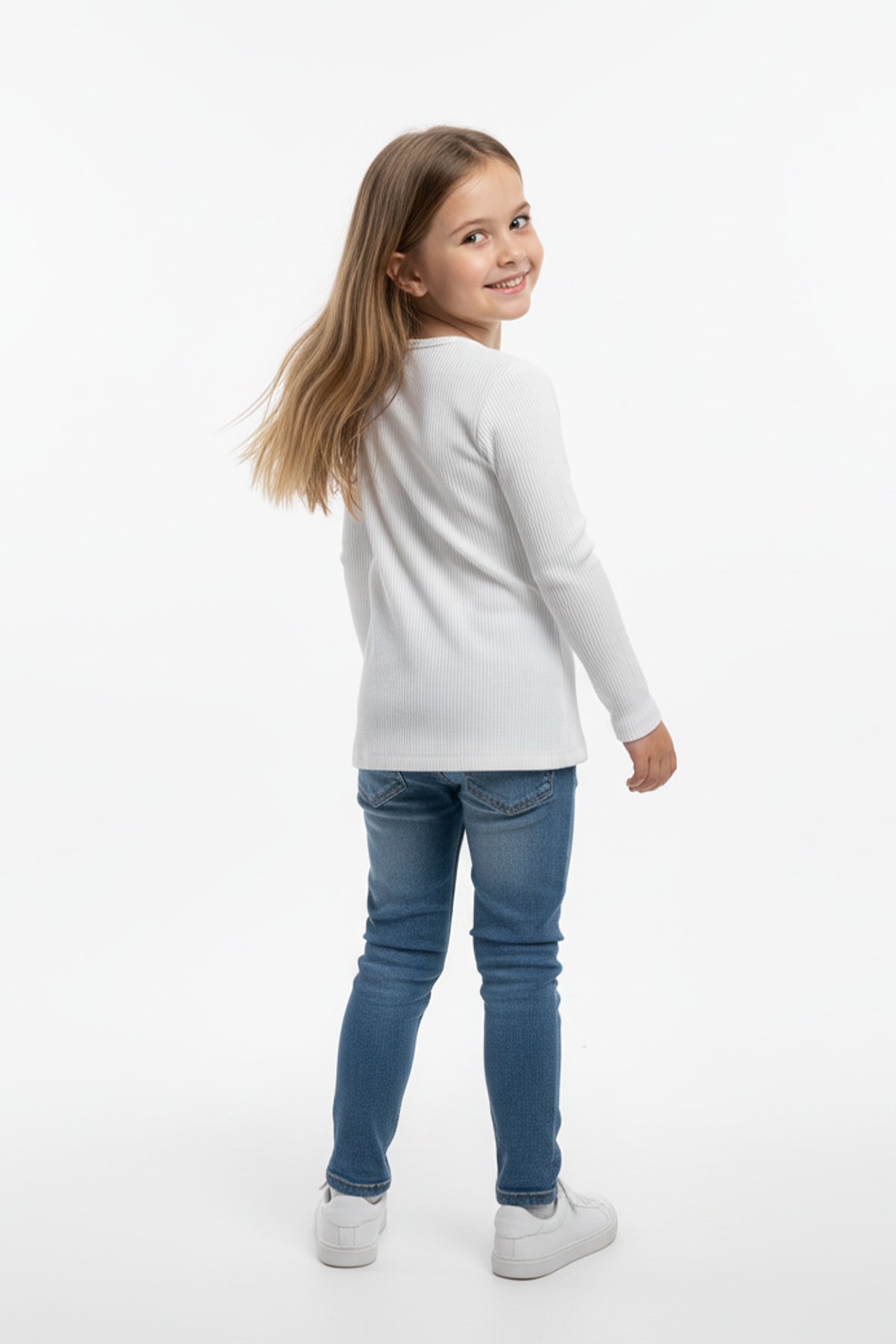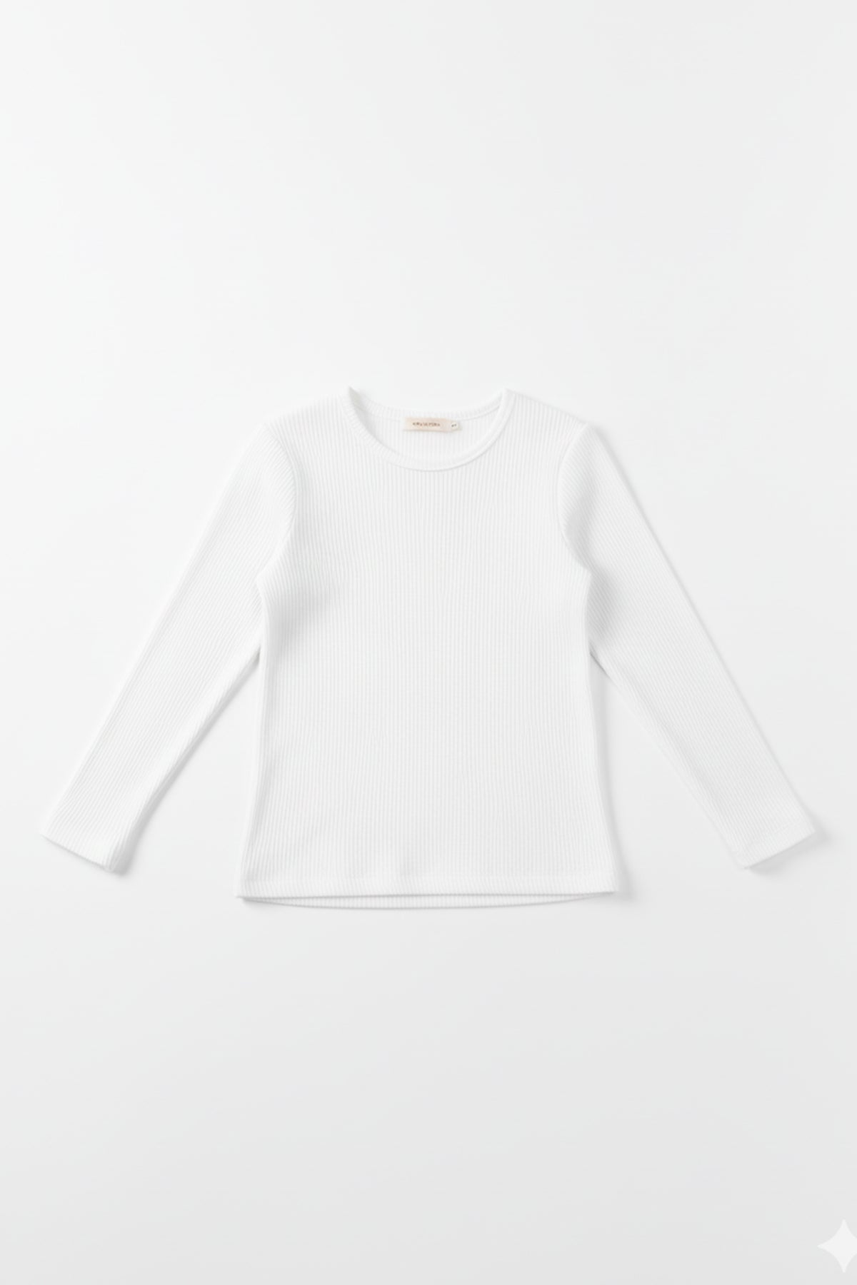A timeless wardrobe essential, this ribbed long sleeve top for girls combines simplicity with everyday comfort. Crafted from soft, stretchable ribbed fabric, it offers a snug yet breathable fit perfect for layering or wearing on its own. The clean white color adds versatility, making it easy to pair with skirts, jeans, or dungarees for any occasion. A must-have staple for cozy, effortless style.