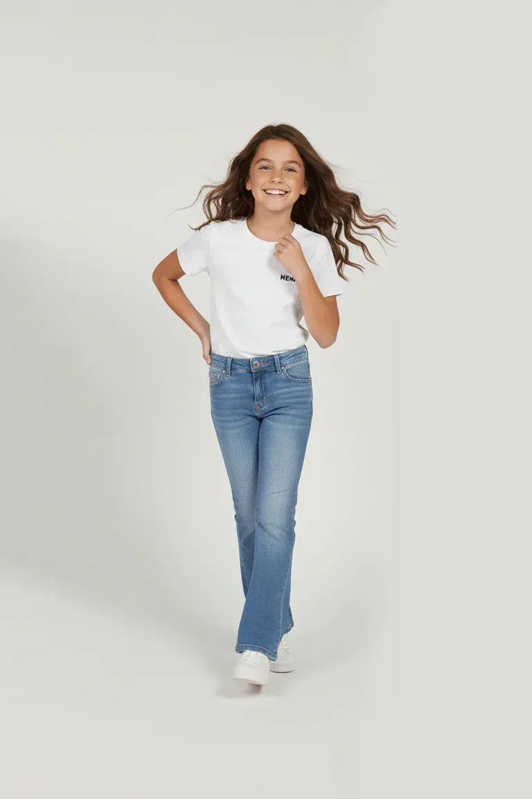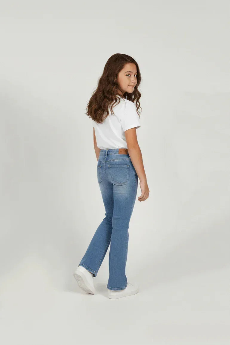 Medium Wash Flared Denim Jeans For Girl - Mid Blue