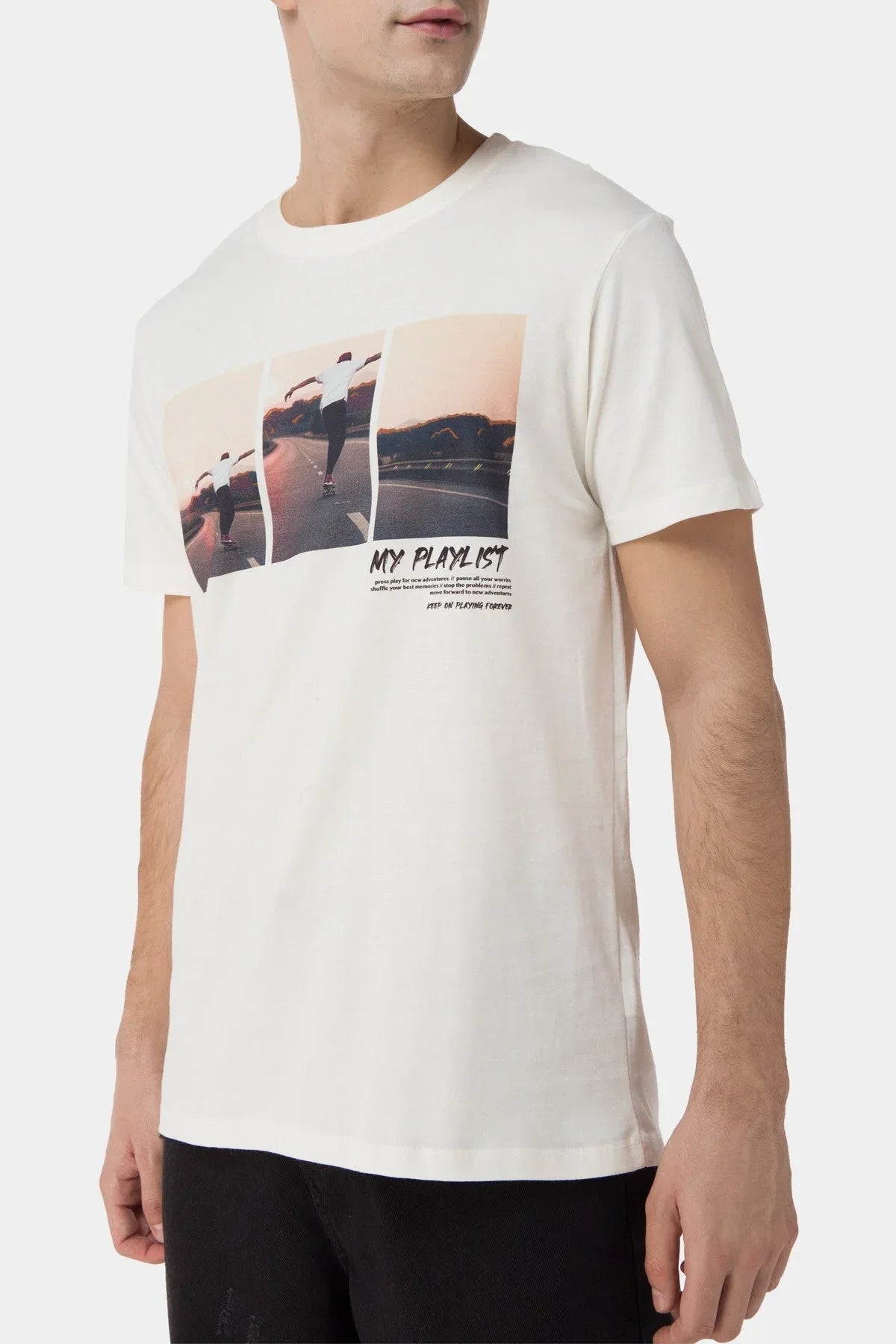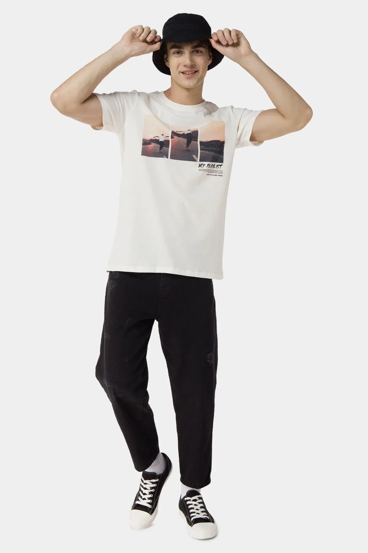 100% Cotton. Crew Neck With Short Sleeves. Front Illustration And Typography