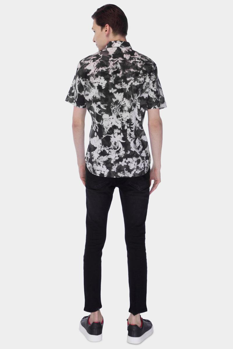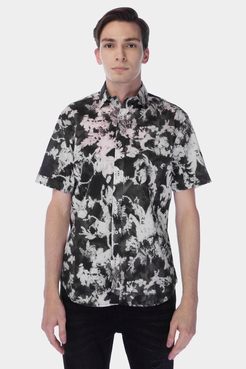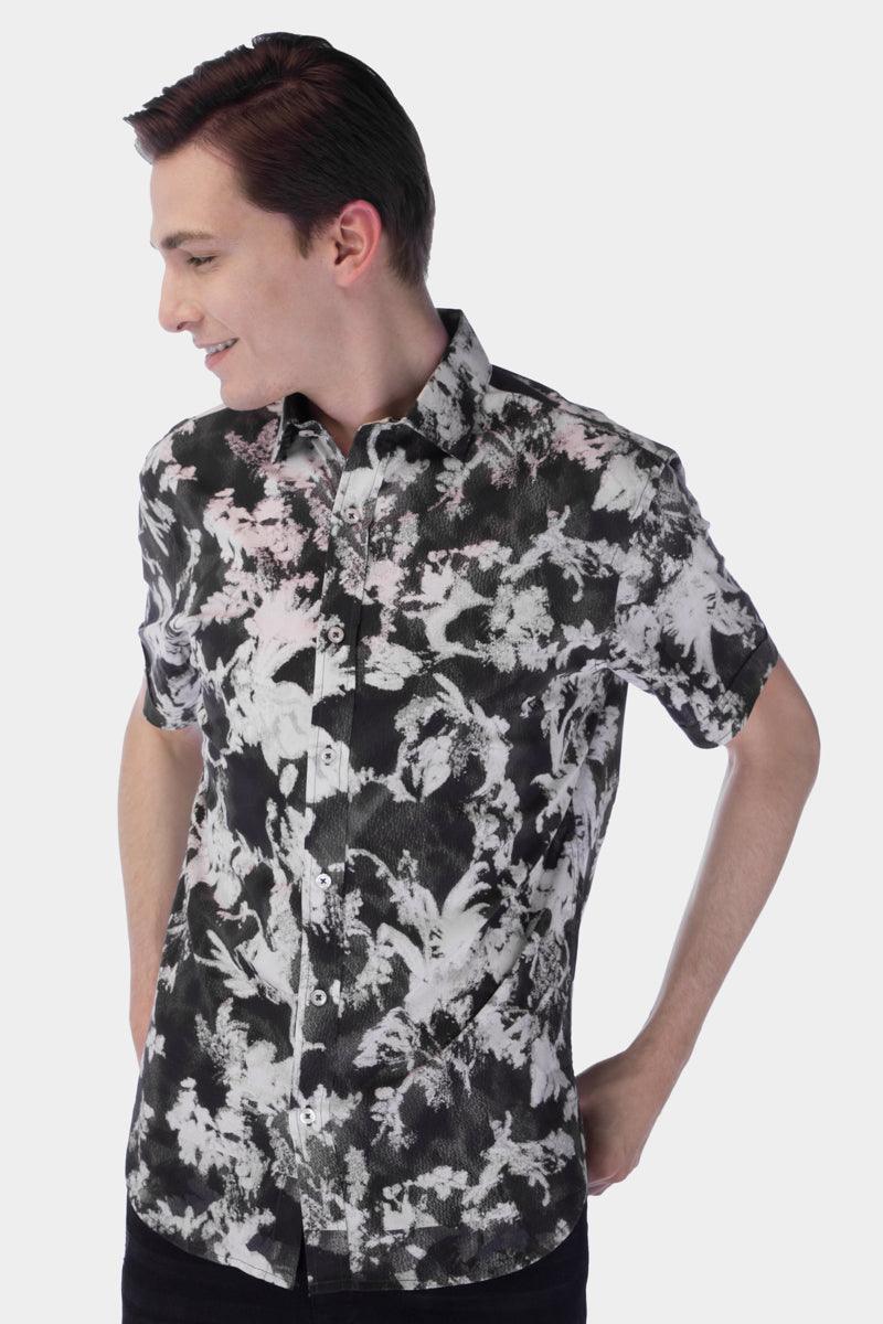 100% Cotton Abstract Floral Casual Button Down Shirt With Regular Collar. Folded Hem Half Sleeves.