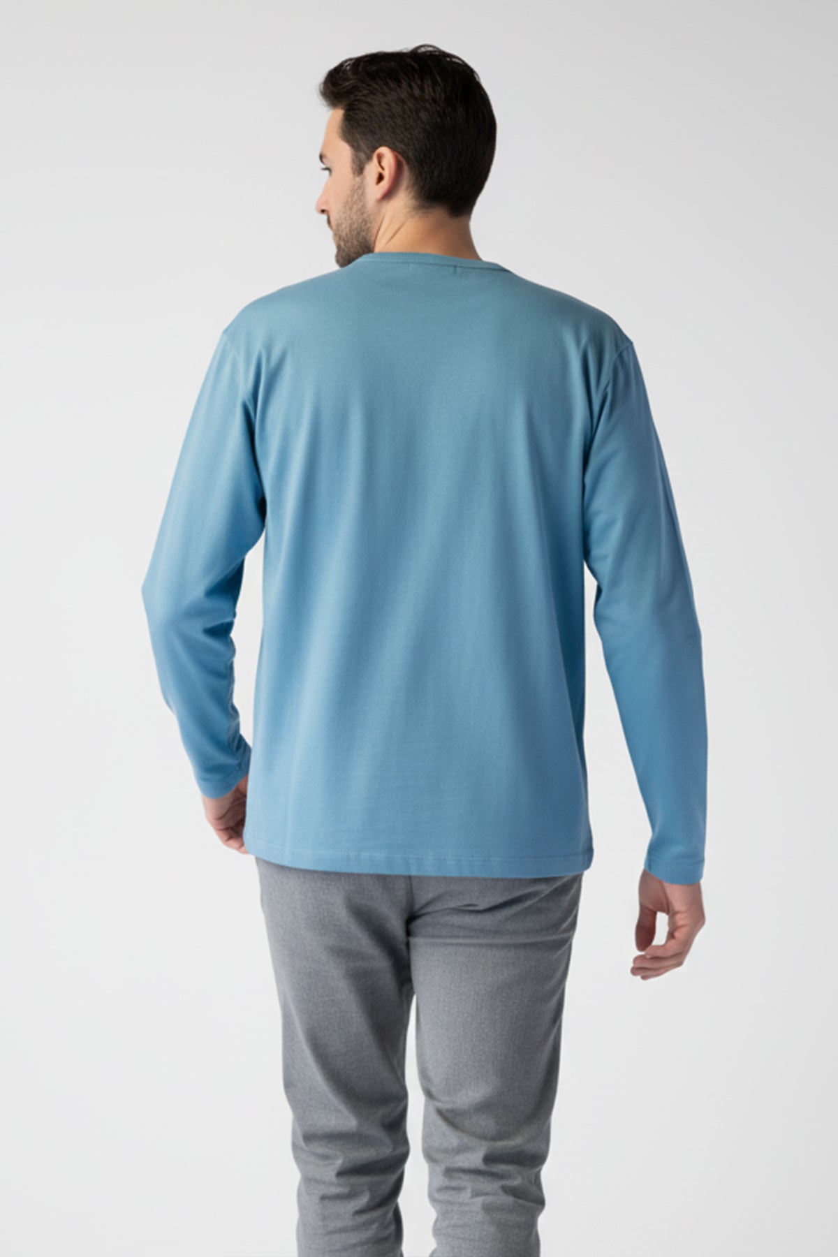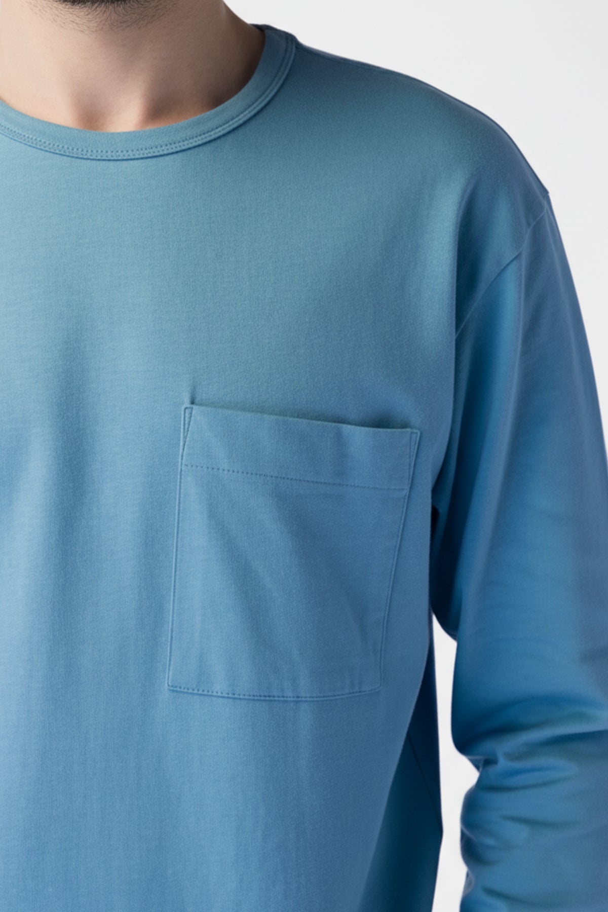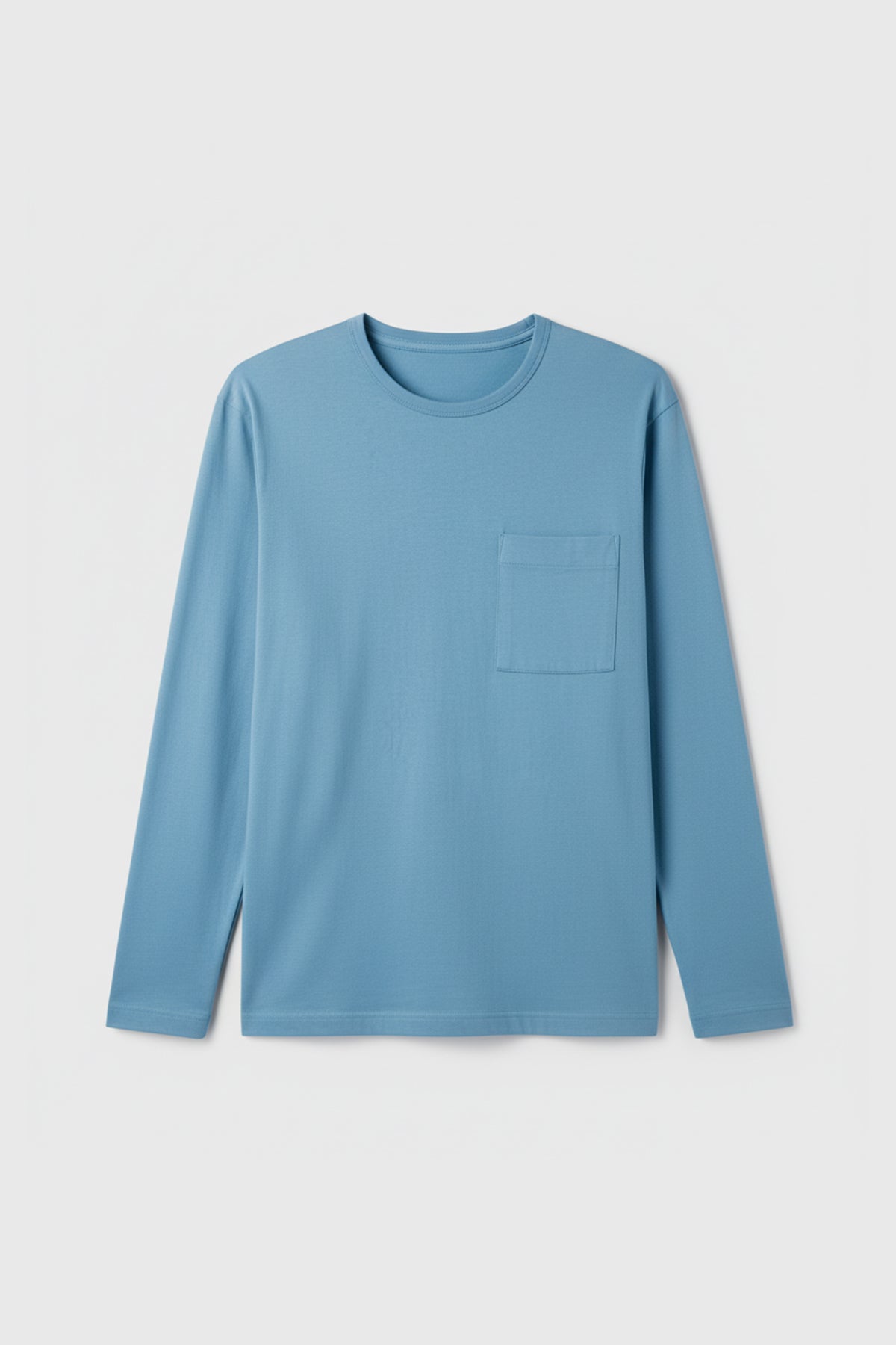 100% Cotton. Basic T-Shirt With Round Neck And Full Sleeves. Chest Patch Pocket
