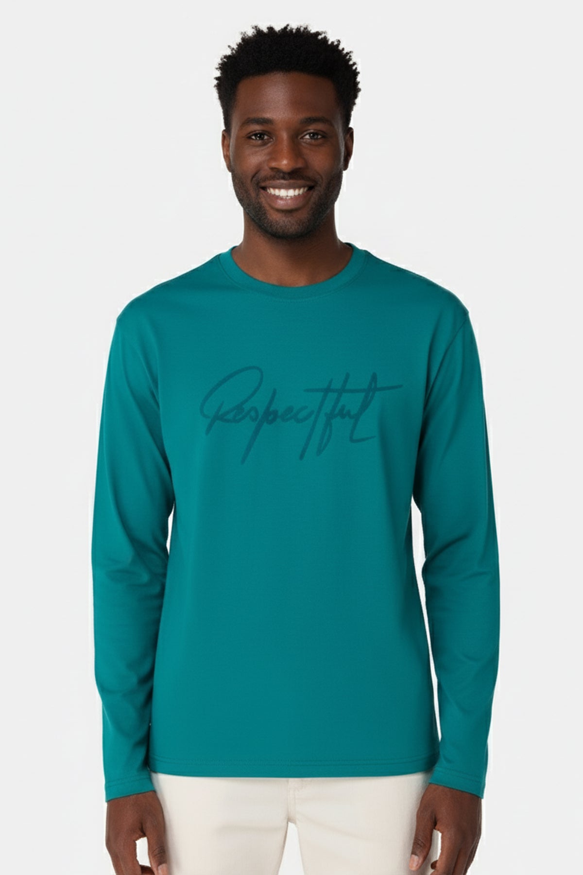 Printed Long Seleeve T-Shirt For Men - Alpine Green
