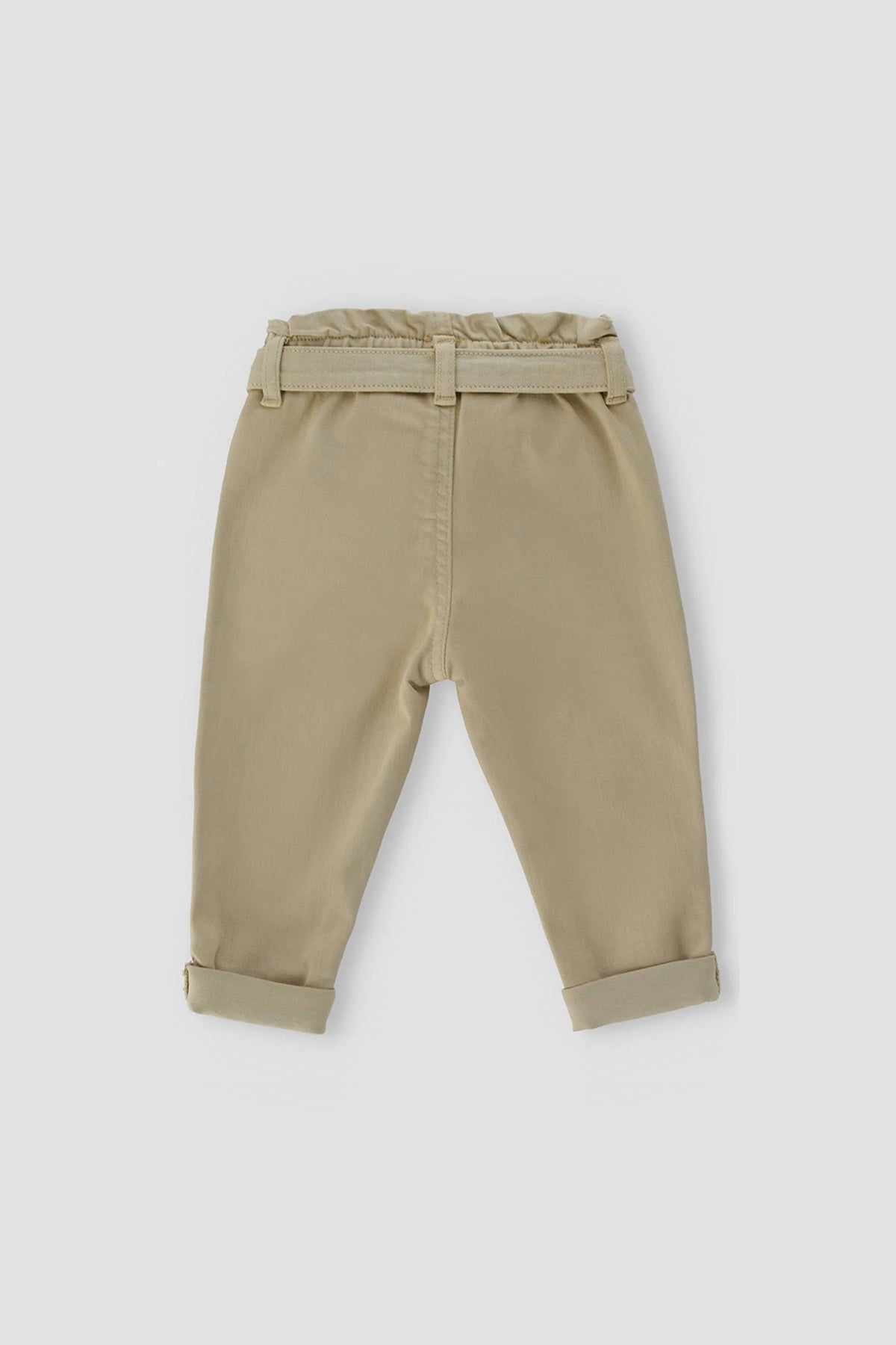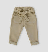98% Cotton & 2% Elastane. Stretchable And Comfortable Solid Pants Featuring Elasticated Waistband With Self Belt. Front Patch Pockets. Narrow Hem
