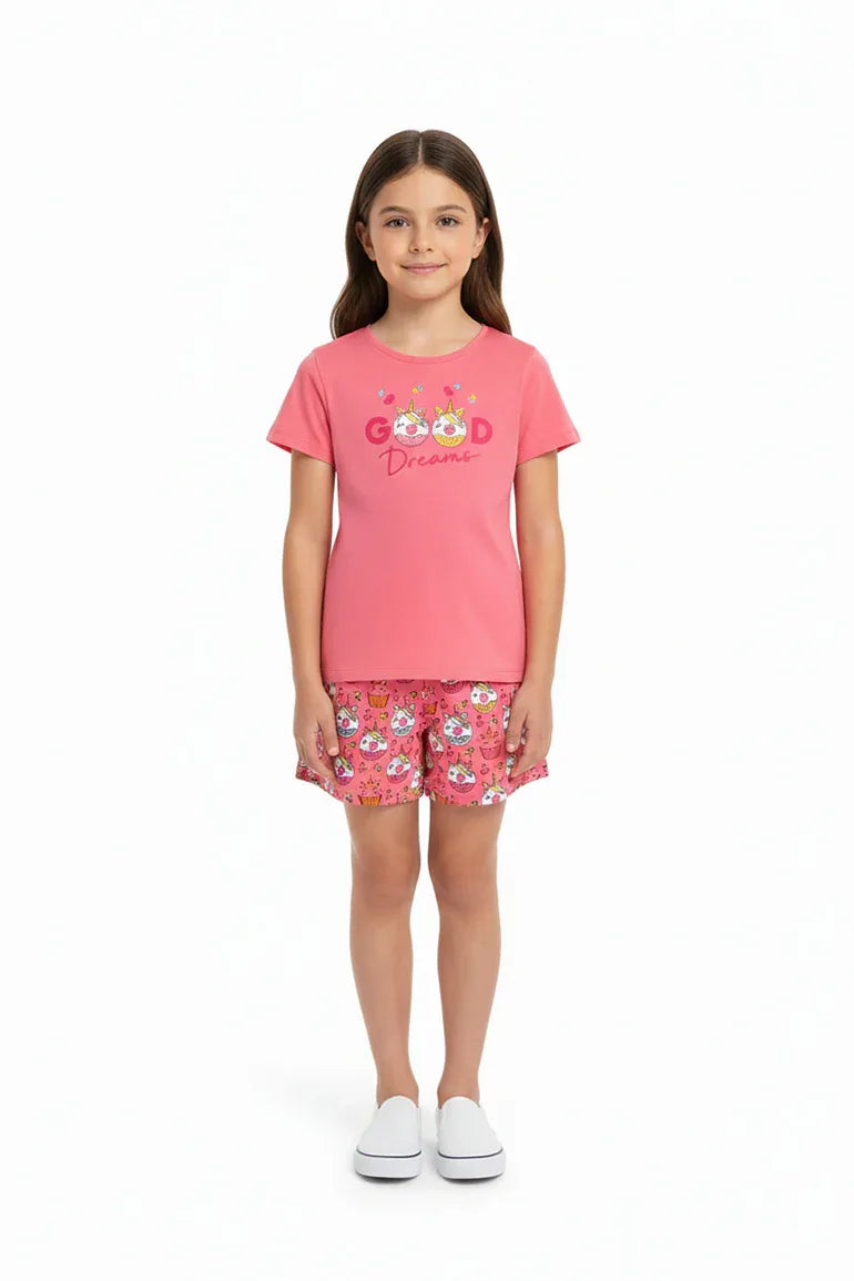 100% Cotton. Stretchable And Comfortable Crew Neck Typography T-Shirt Featuring Short Sleeves. Front Illustration Paired With Conversational Print Short Pjs With Elasticated Waistband Featuring Drawstring.