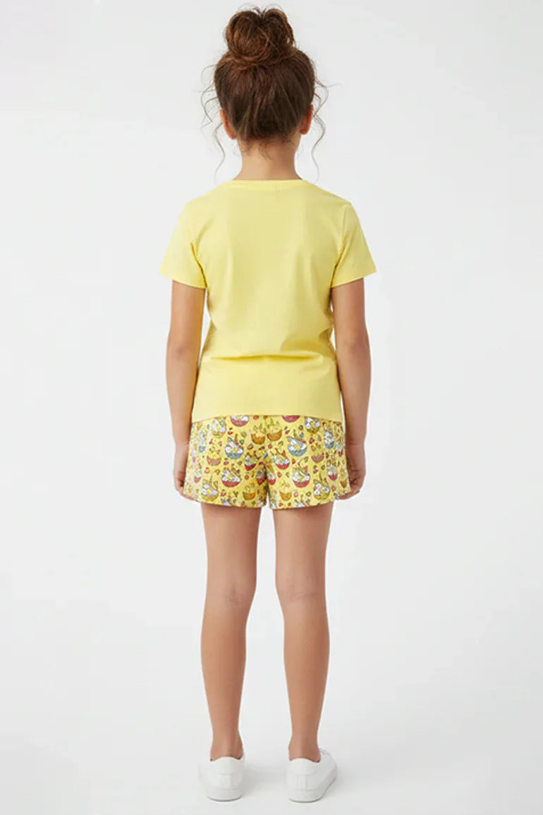 100% Cotton. Stretchable And Comfortable Crew Neck Typography T-Shirt Featuring Short Sleeves. Front Illustration Paired With Conversational Print Short Pjs With Elasticated Waistband Featuring Drawstring.
