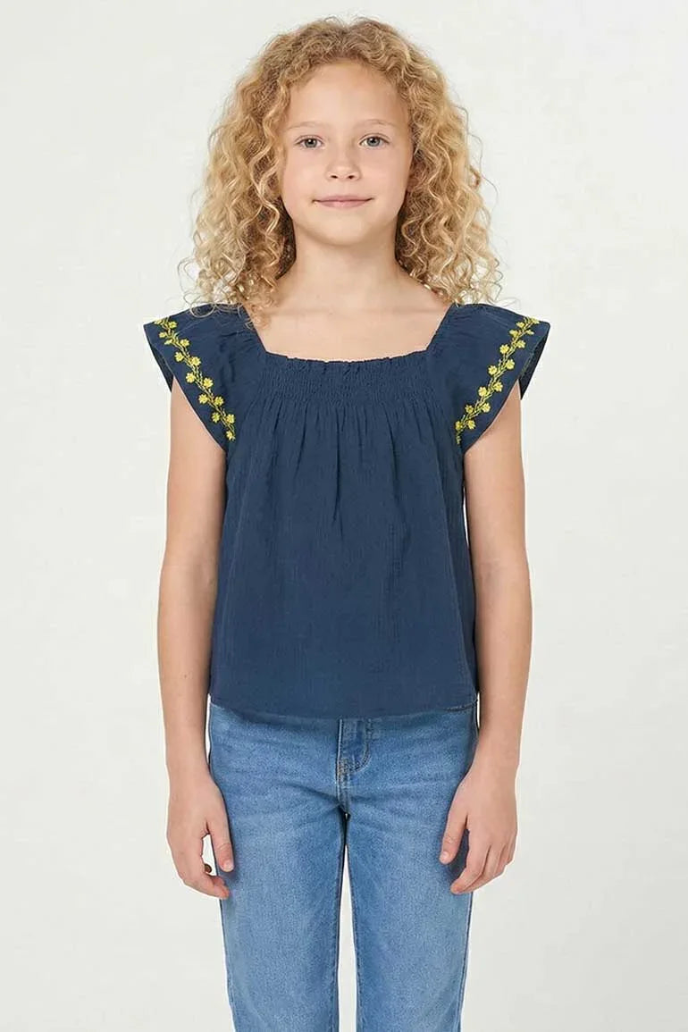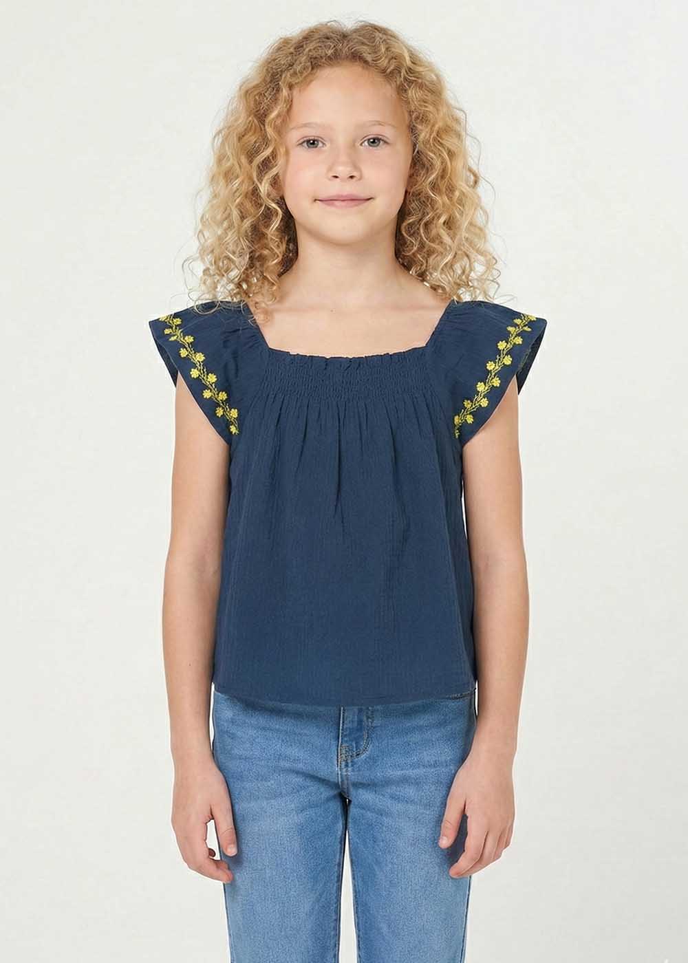 Solid Blouse For Girl - Navy