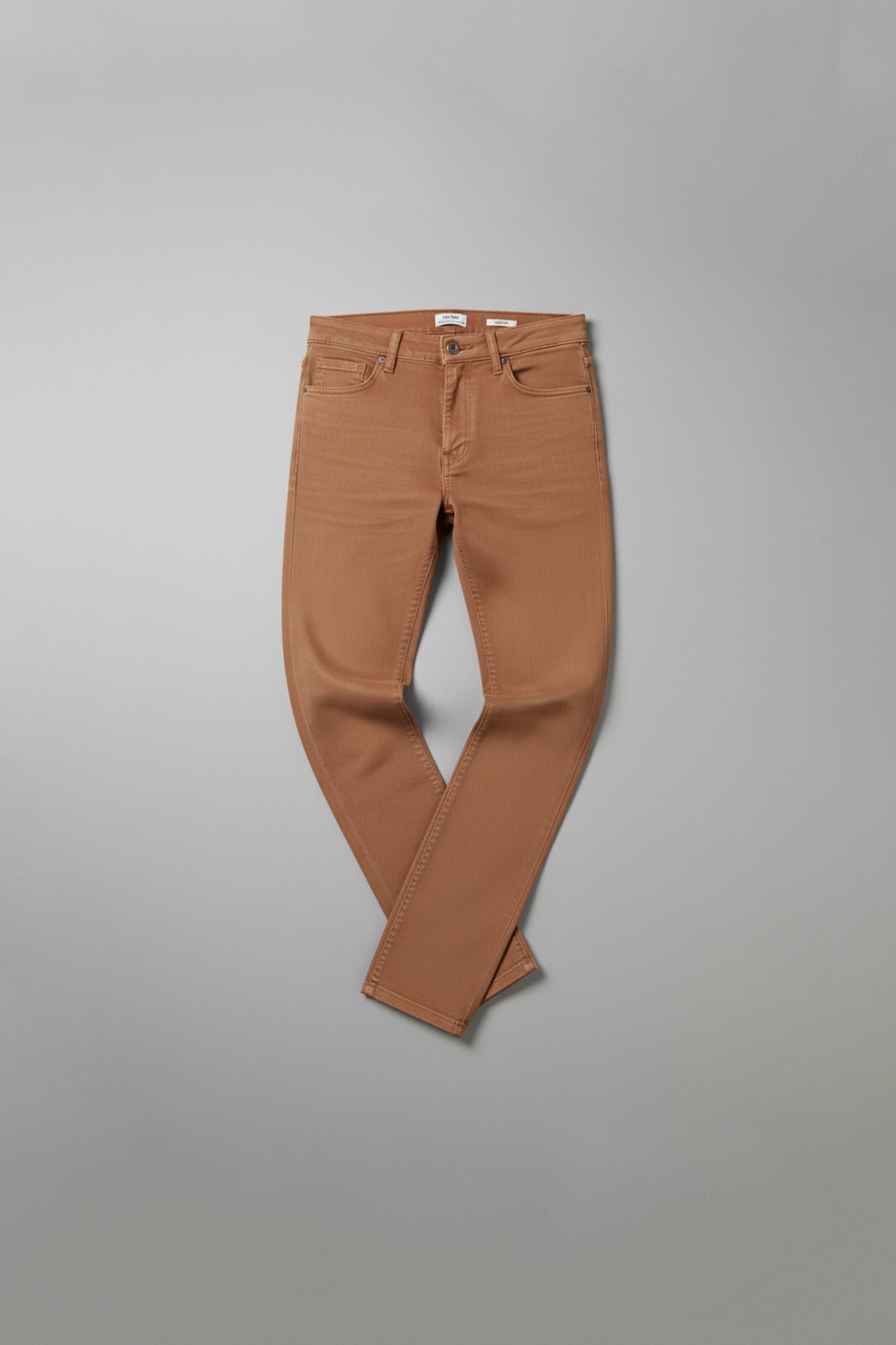 98% Cotton & 2% Elastane. Neutral Chic Slim Fit Cotton Denim Pants With Regular Waistband Featuring Button And Loops. Front Slash Pockets And Coin Pocket. Rear Yoke And Patch Pockets. Straight Hem