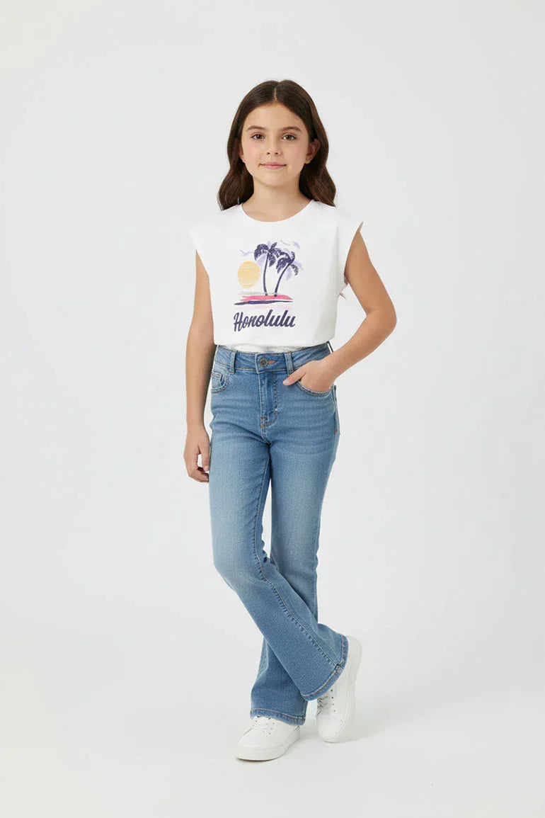 100% Cotton. Sleeveless Tee. Crew Neckline. Front Illustration. Elasticated Waistline.