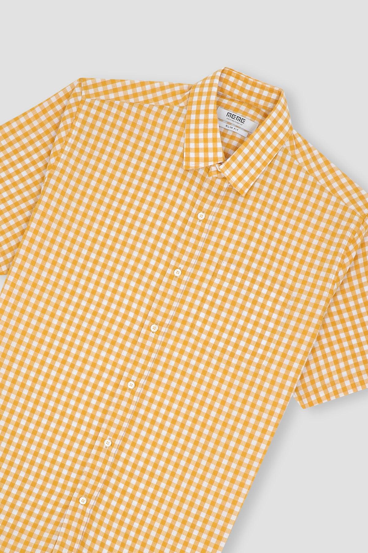 Check Half Sleeve Shirt For Men - Yellow