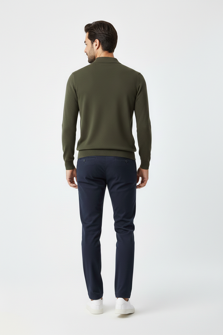 This men's polo sweater is designed for both comfort and style. Featuring a minimalist design with a classic Collar neckline and long sleeves, its perfect for wearing on its own. Crafted from soft fabric, it offers warmth and a refined look, ideal for casual and smart-casual outfits.