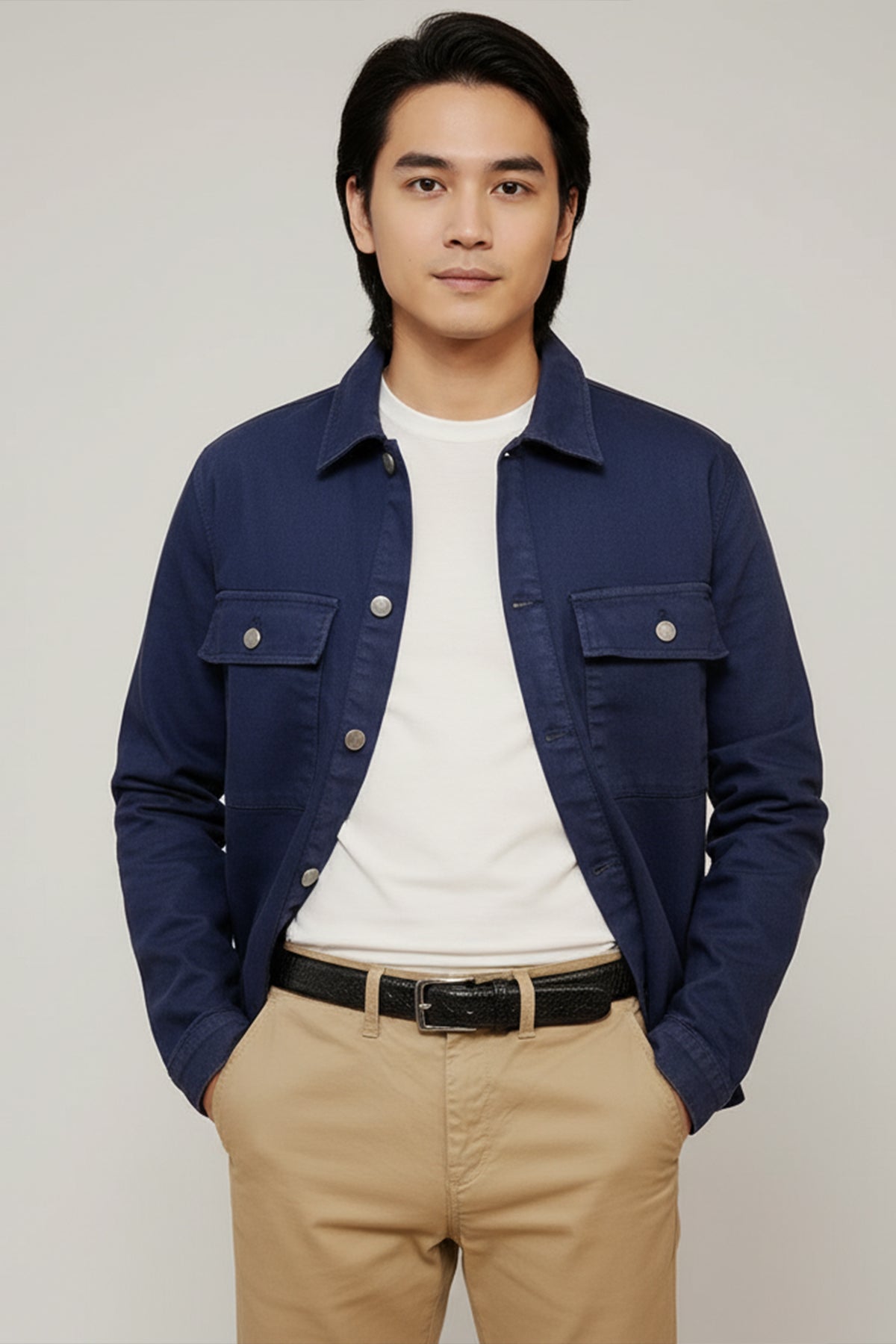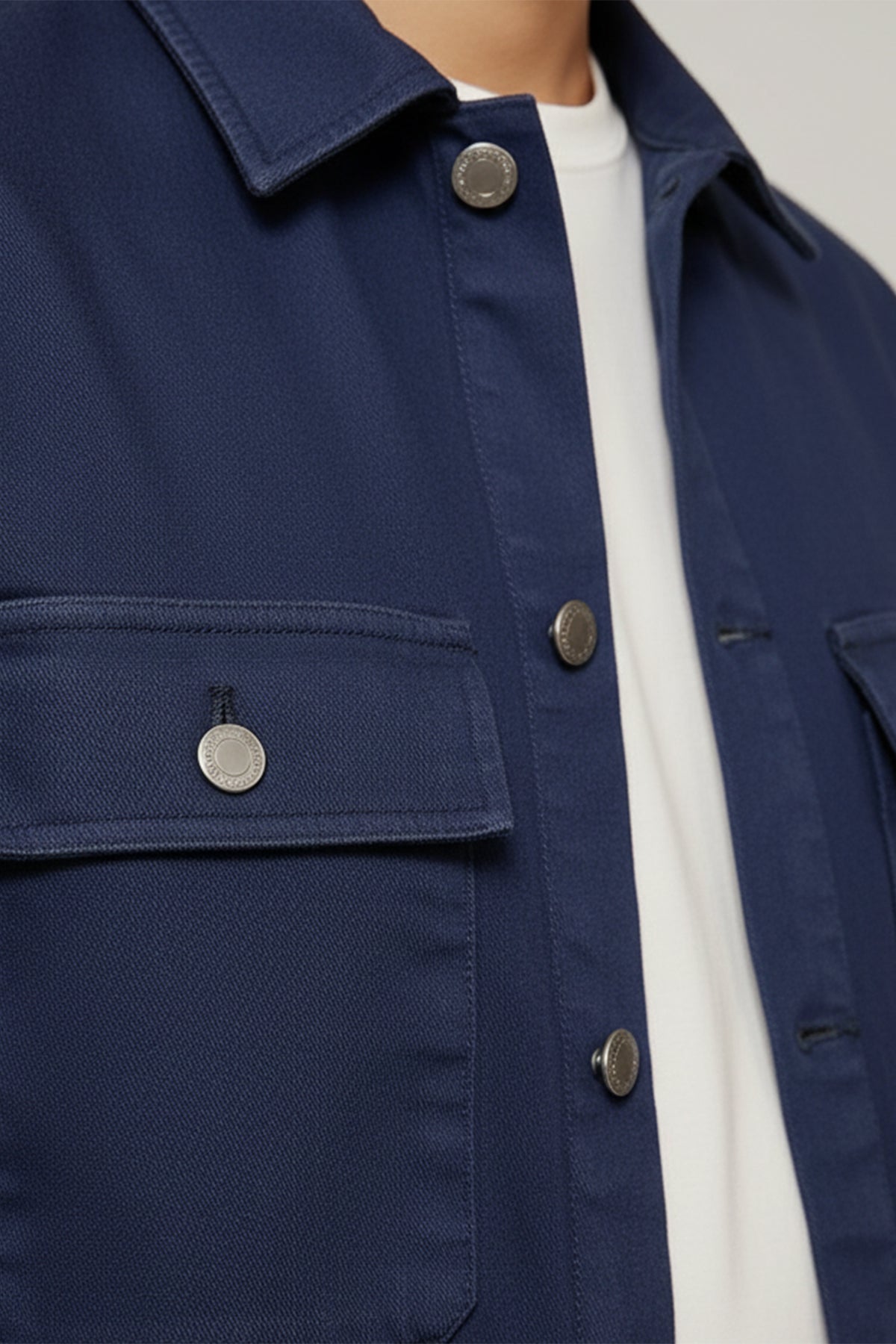 38% Cotton 2% Elastane. Woven Shacket With Regular Collar And Front Button Down. Featuring Front Patch Pockets With Flap And Button On Each Sleeve Hem.