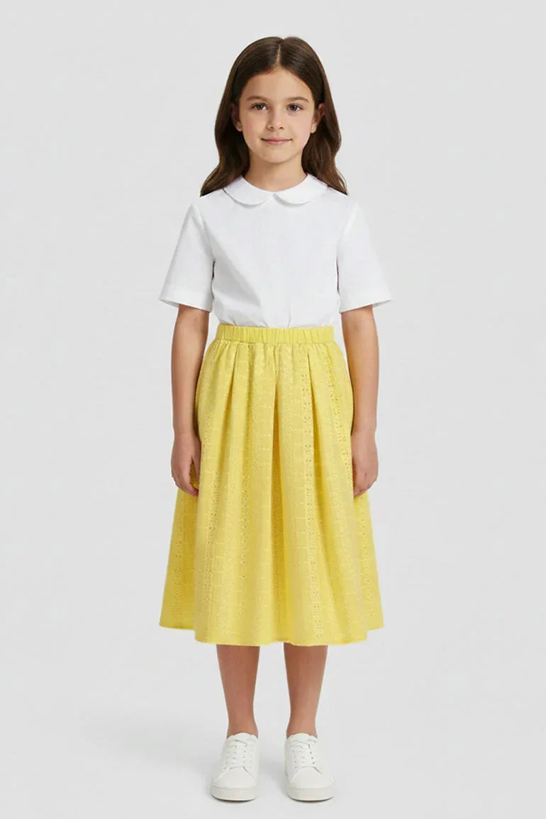 100% Cotton. Casual And Comfortable Solid Embroidered Skirt With Waistband