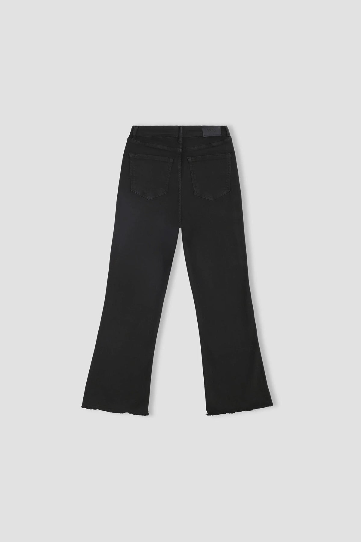 97% Cotton 3% Elastane. Regular Waistband With Button And Loops. Front Slash Pockets. Rear Welt Pockets With With Fringe Hem At Bottom End