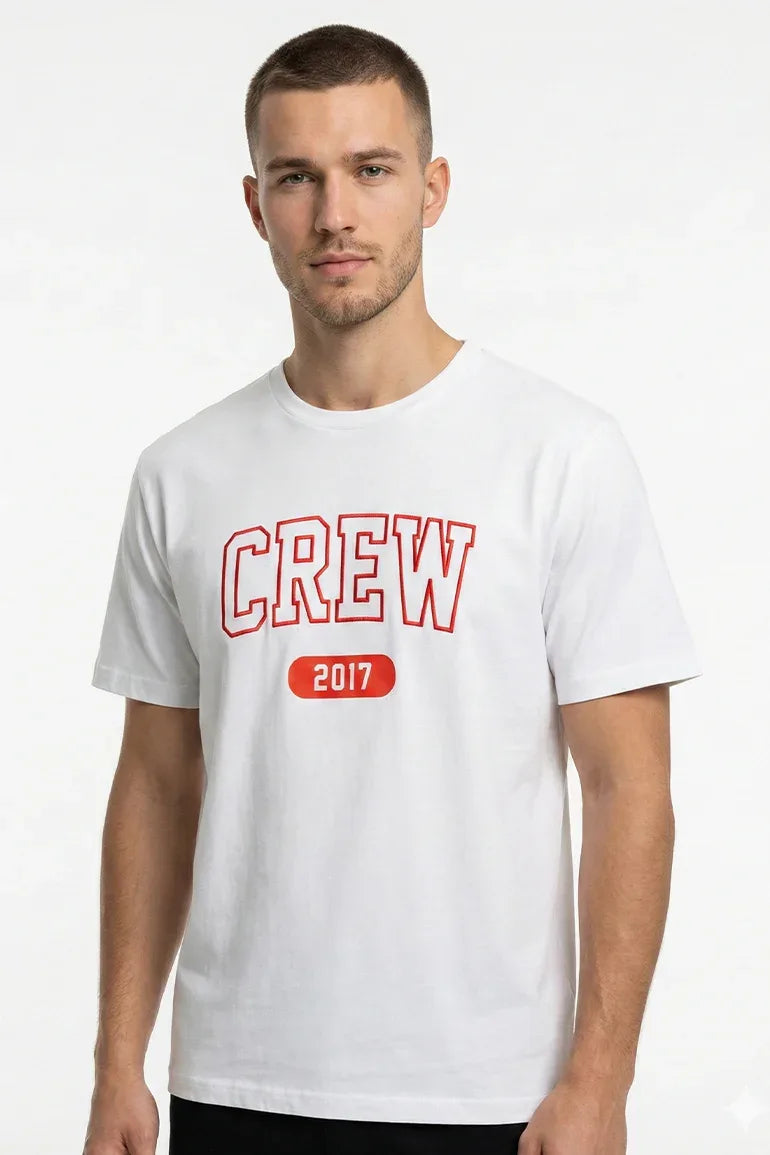 100% Cotton. Comfortable Crew Neck Top With Short Sleeves. Featuring Front Typography.
