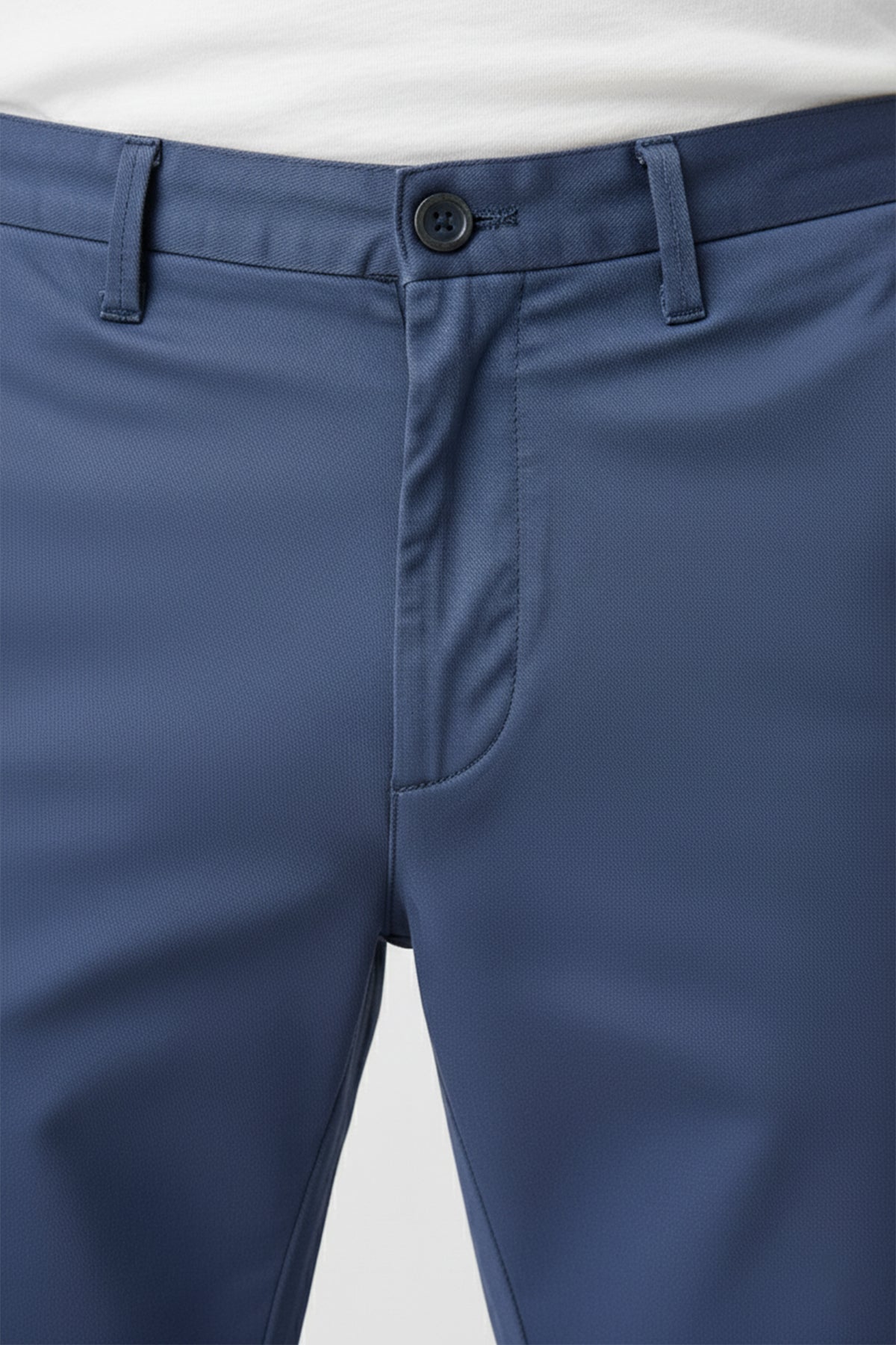 98% Cotton 2% Elastane. Regular Waistband With Button And Loops. Front Slash Pockets. Rear Welt Pockets
