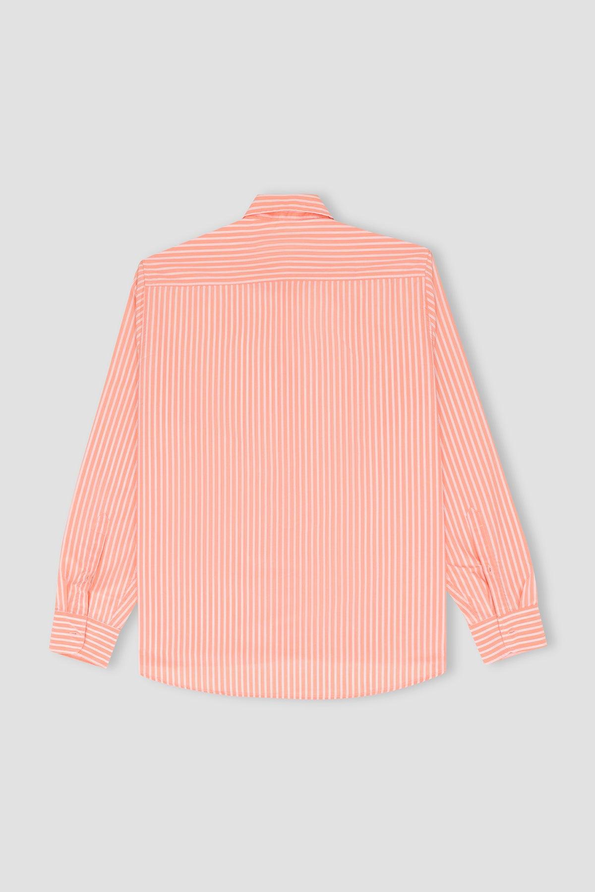 This striped men's smart casual button-down shirt features a regular collar and long cuffed sleeves, offering a polished yet comfortable look. Its versatile design pairs effortlessly with both casual and semi-formal outfits, making it an essential wardrobe staple.