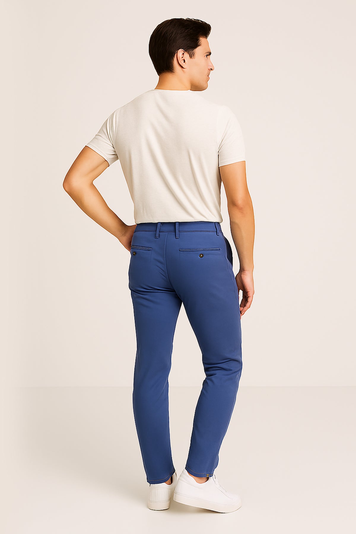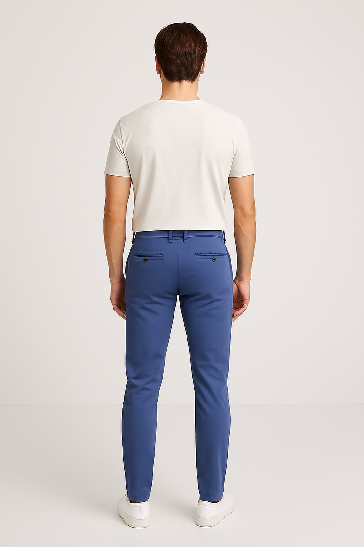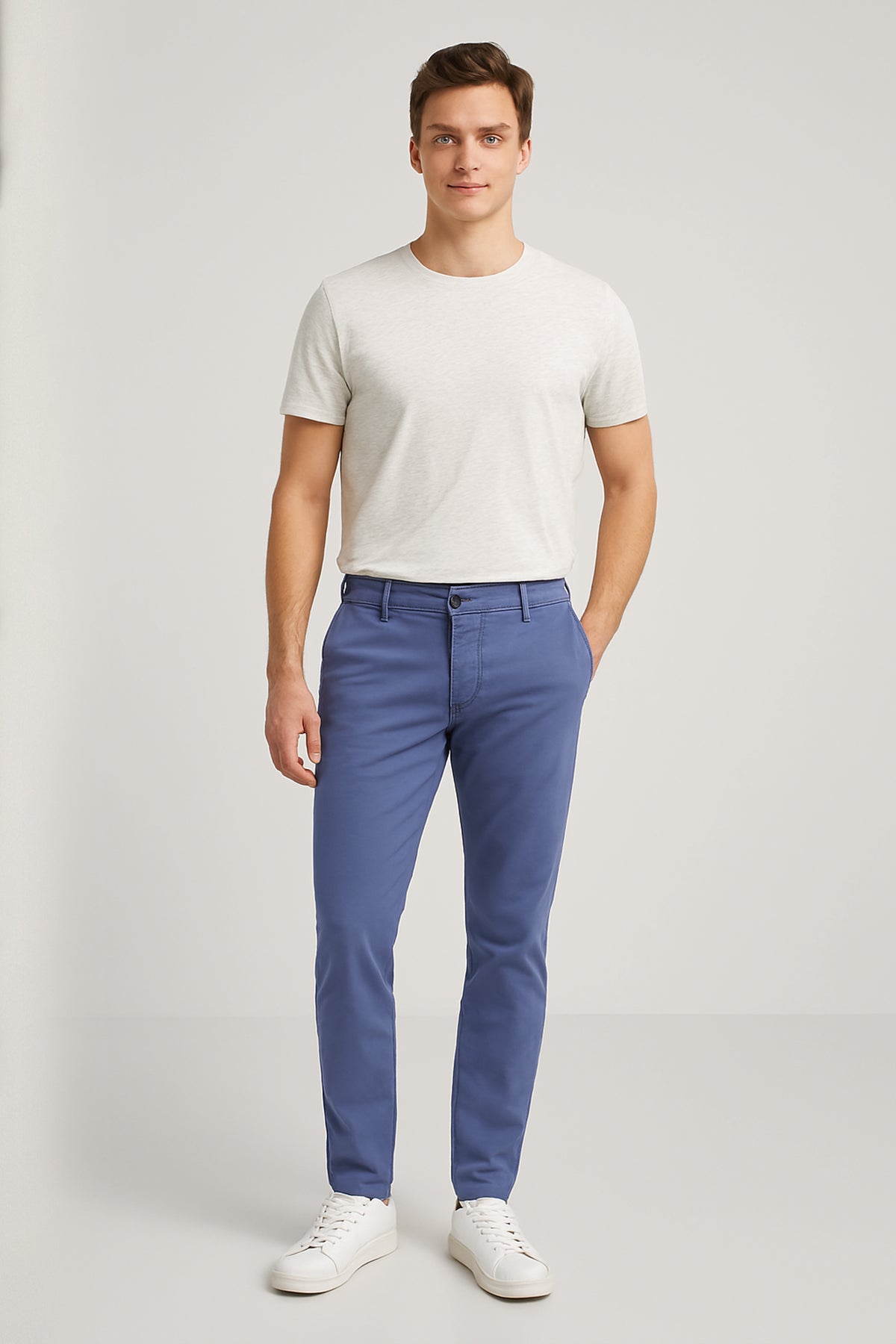 98% Cotton 2% Elastane. Regular Waistband With Button And Loops. Front Slash Pockets. Rear Welt Pockets