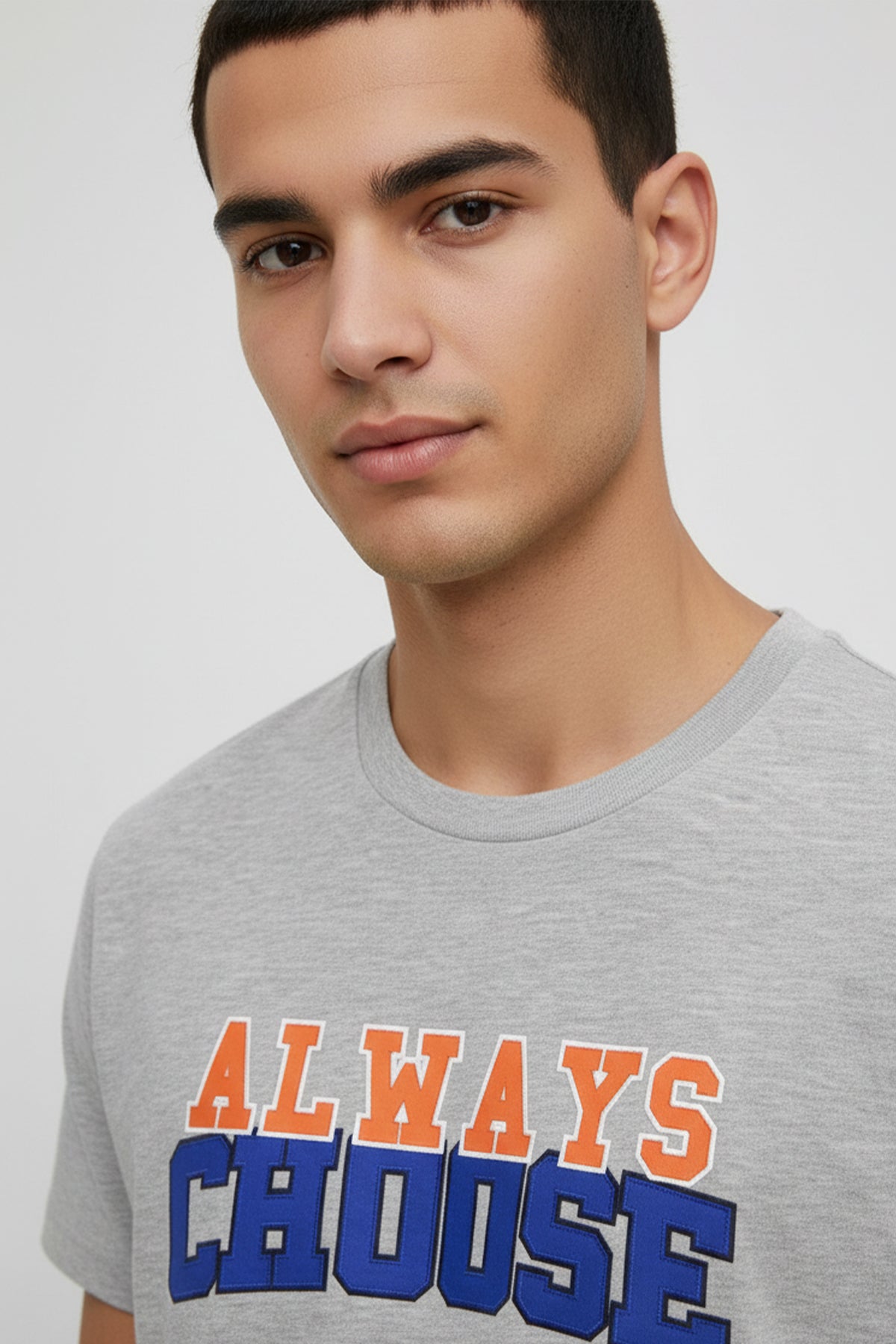 100% Cotton. High Quality Single Jersey Ribbed Crew Neck T-Shirt Featuring Short Sleeves. Front And Rear Typography.