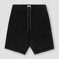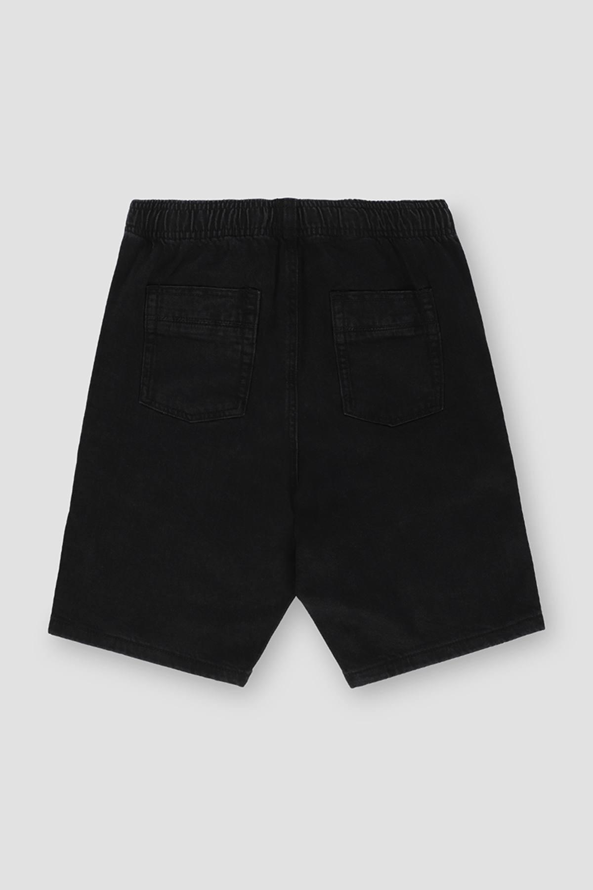 100% Cotton. Classic Dark Wash Adjustable Denim Shorts Featuring Elasticated Waistband With Inverted Drawstring. Side Seam Pockets And Rear Patch Pockets.
