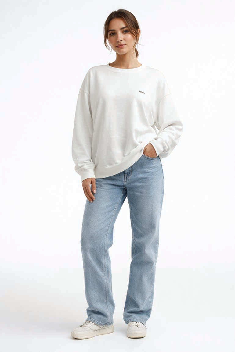 A cozy off-white crew neck sweatshirt with an oversized fit for effortless everyday styling.