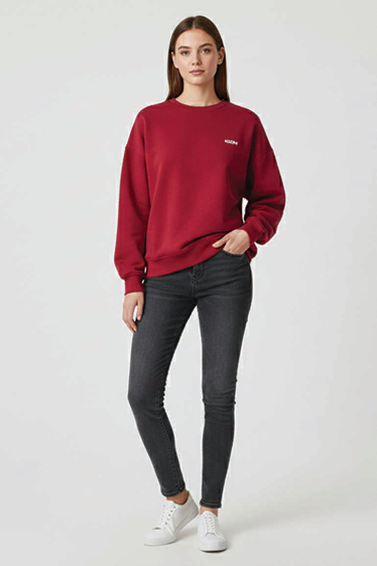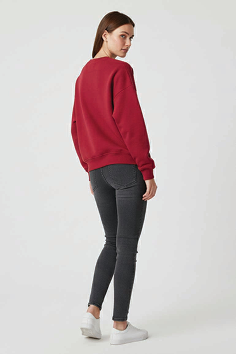 Oversized Fleece Sweatshirt For Women - Burgundy