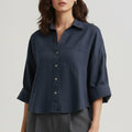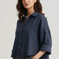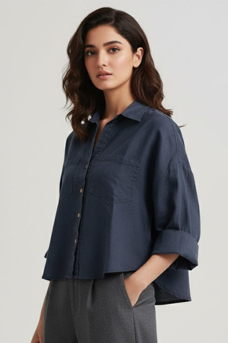 Stay effortlessly cool with this oversized shirt for women. Designed for relaxed comfort, it features a button-down front, double flap pockets, and roll-tab sleeves for versatile styling. The breathable linen fabric ensures a lightweight, airy feel — perfect for casual days, travel, or layering over a tank top for an easygoing, chic look.