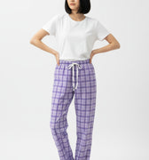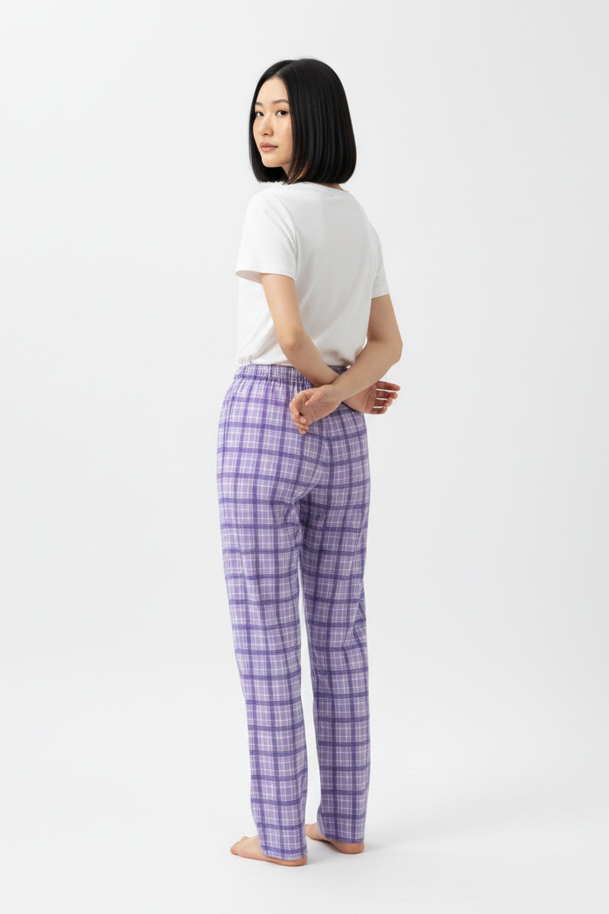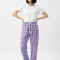 Unwind in effortless comfort with these lilac and white check print pajama pants for women. Crafted from soft, breathable fabric, they feature a relaxed fit with an adjustable drawstring waist for a custom feel. Perfect for cozy nights or laid-back mornings, these pants blend style and comfort with a timeless plaid pattern that never goes out of trend.
