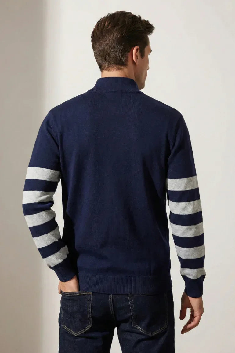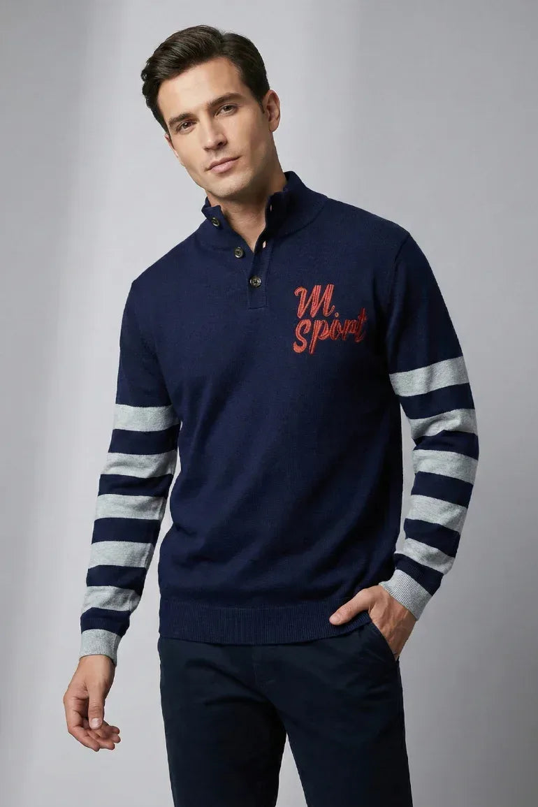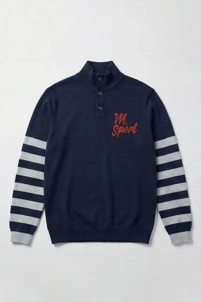 Step up your casual style with this navy polo sweatshirt, featuring bold grey striped sleeves and an embroidered W. Sport chest detail. Made from soft, breathable cotton, it’s designed for all-day comfort with a sporty, polished edge  perfect for weekend wear or relaxed outings.