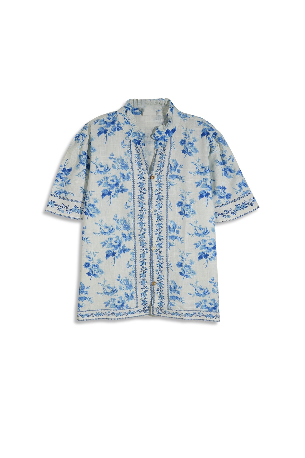 A pop of pattern in a refreshing blue hue, this printed shirt is ideal for casual and semi-formal occasions. Light and breathable for all-day wear.Do not bleach